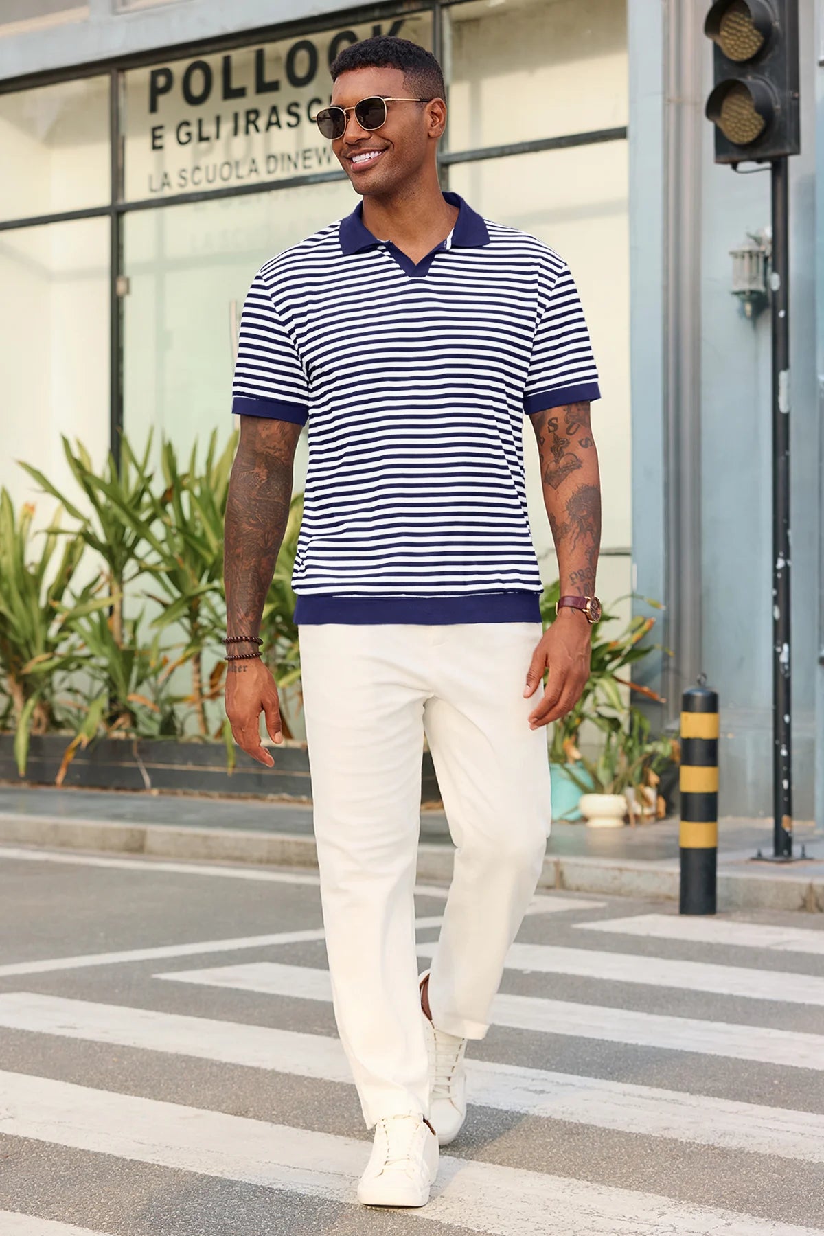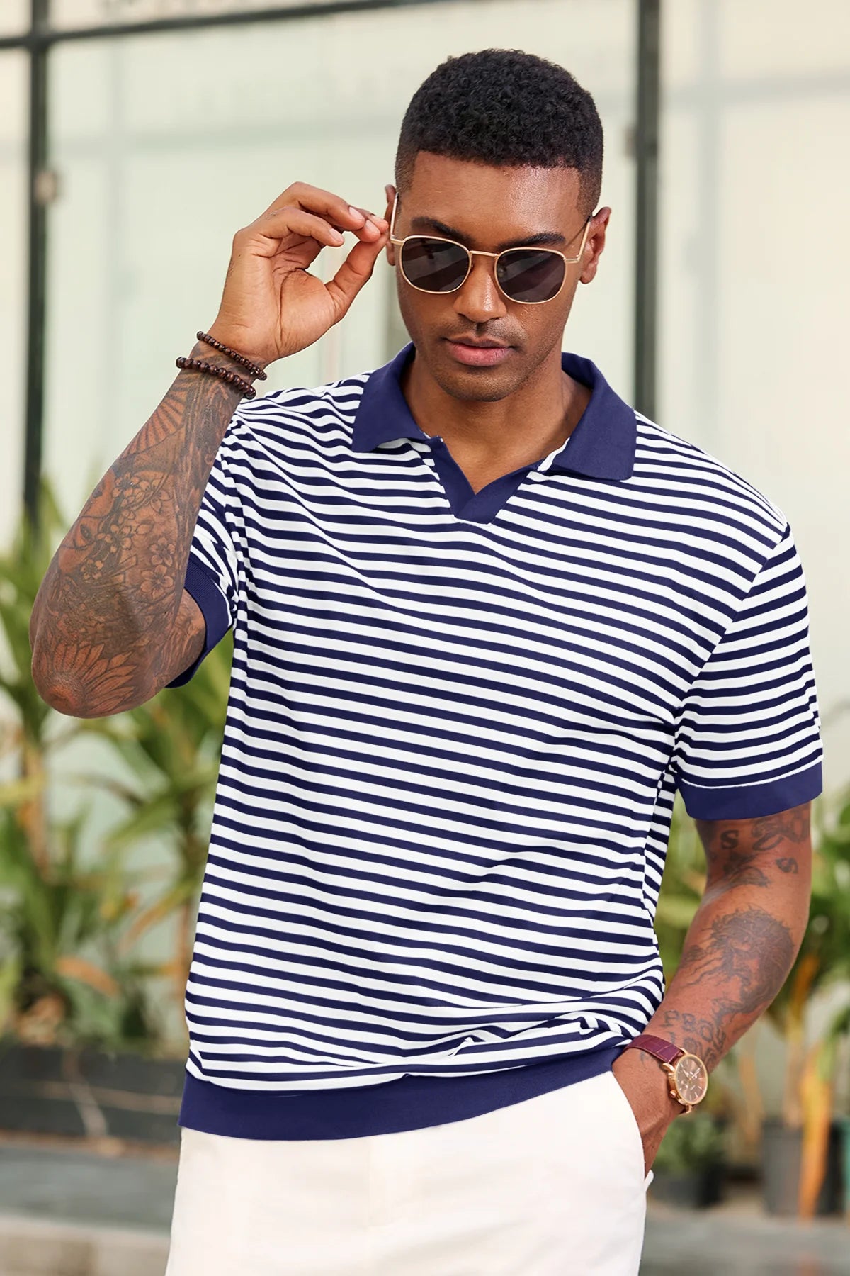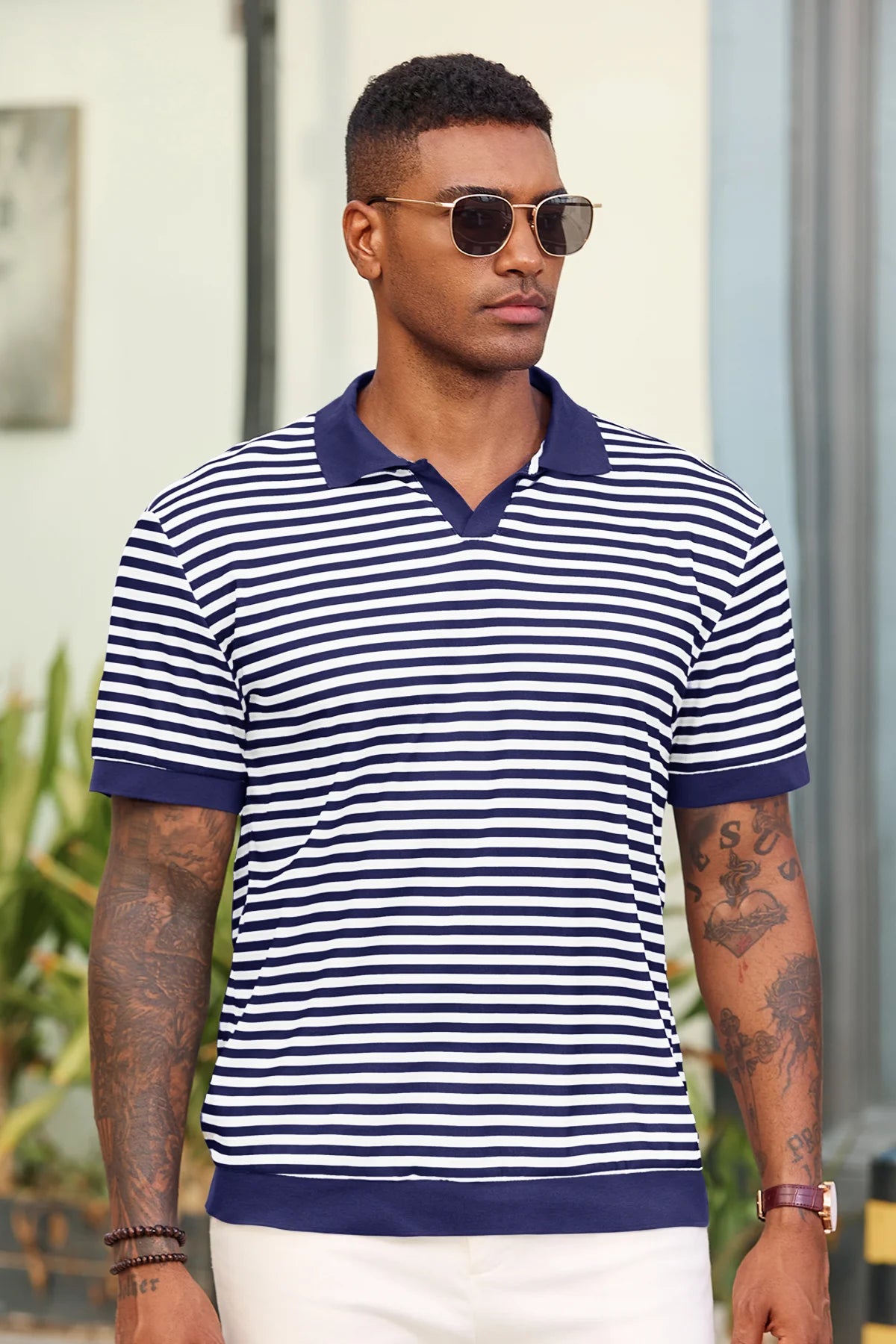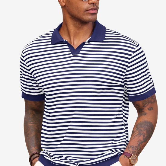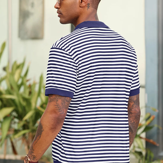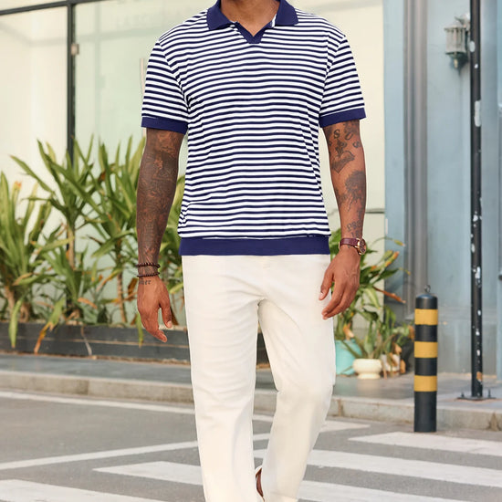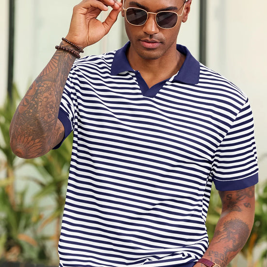 Elevate your wardrobe with Runcati Men’s Short Sleeve Knit Polo Shirt—crafted for comfort and classic style. This 100% polyester polo features a timeless V-neck, resort collar, and striped design, paired with ribbed sleeves and hem for a tailored fit. Soft, stretchy, and breathable, it keeps you cool in hot summer weather while offering versatility for casual or formal moments.