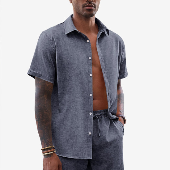 Runcati Mens Dark Blue Linen Short Sleeve 2 Piece Sets