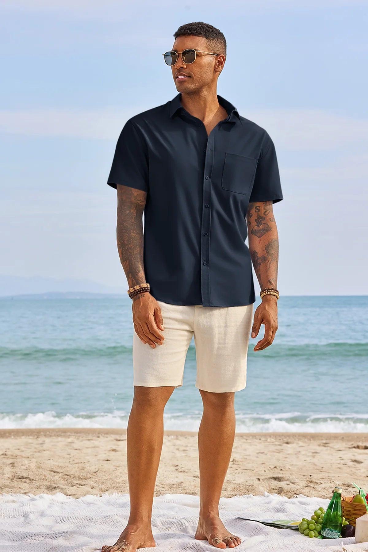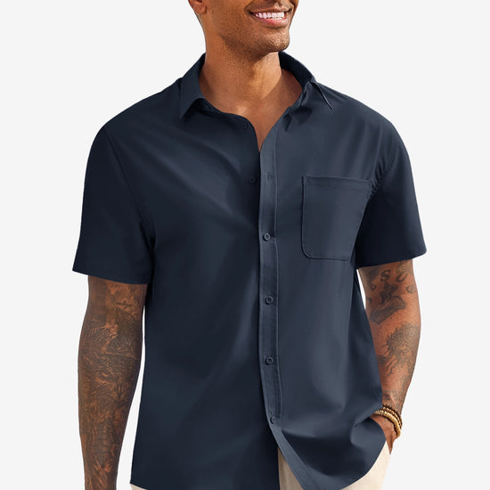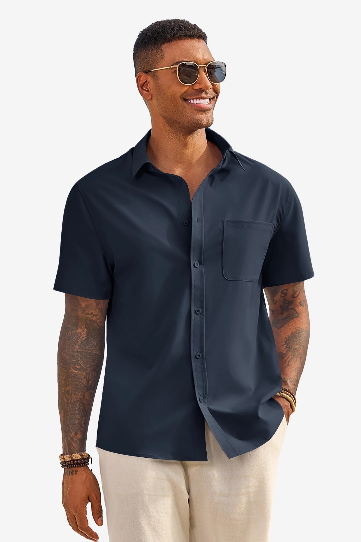 Runcati Mens Dark Blue Short Sleeve Casual Dress Shirt