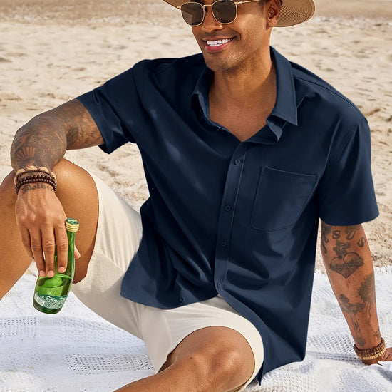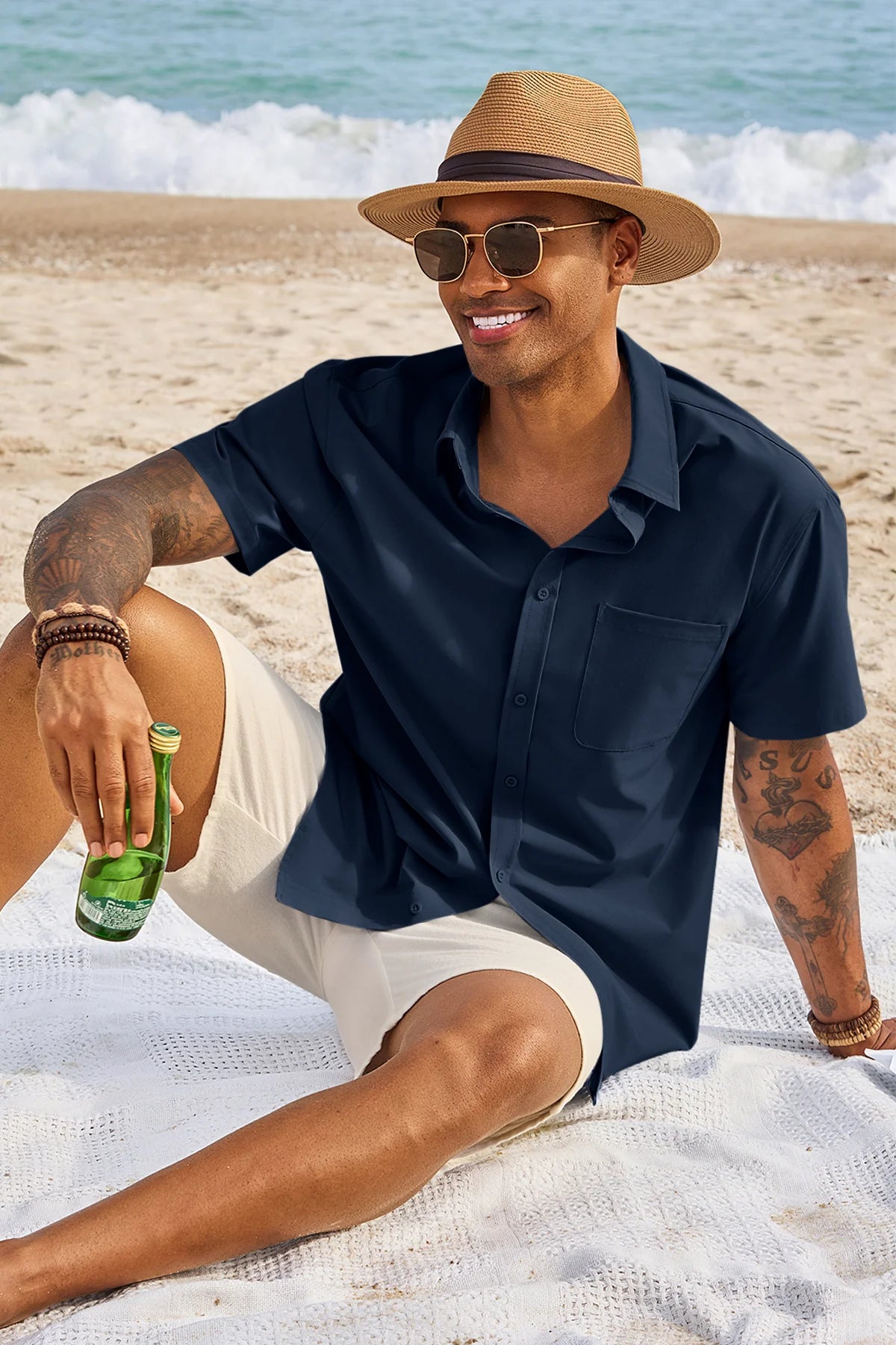 Discover the perfect balance of professional style and relaxed comfort with this Runcati men's short sleeve dress shirt. Designed with a modern untucked length, this solid-colored button-down features a crisp turn-down collar and a versatile regular fit. It’s the ultimate summer essential for the man who demands a sharp look without the effort.