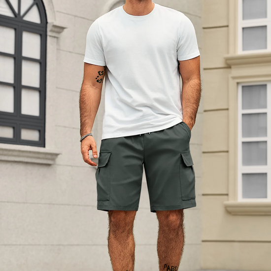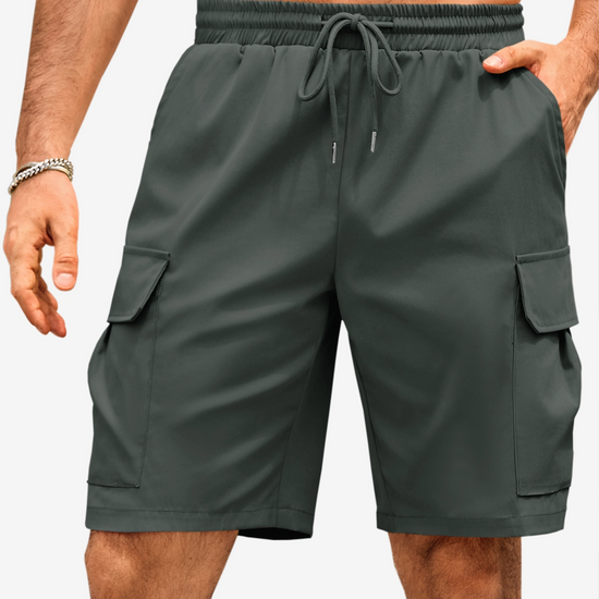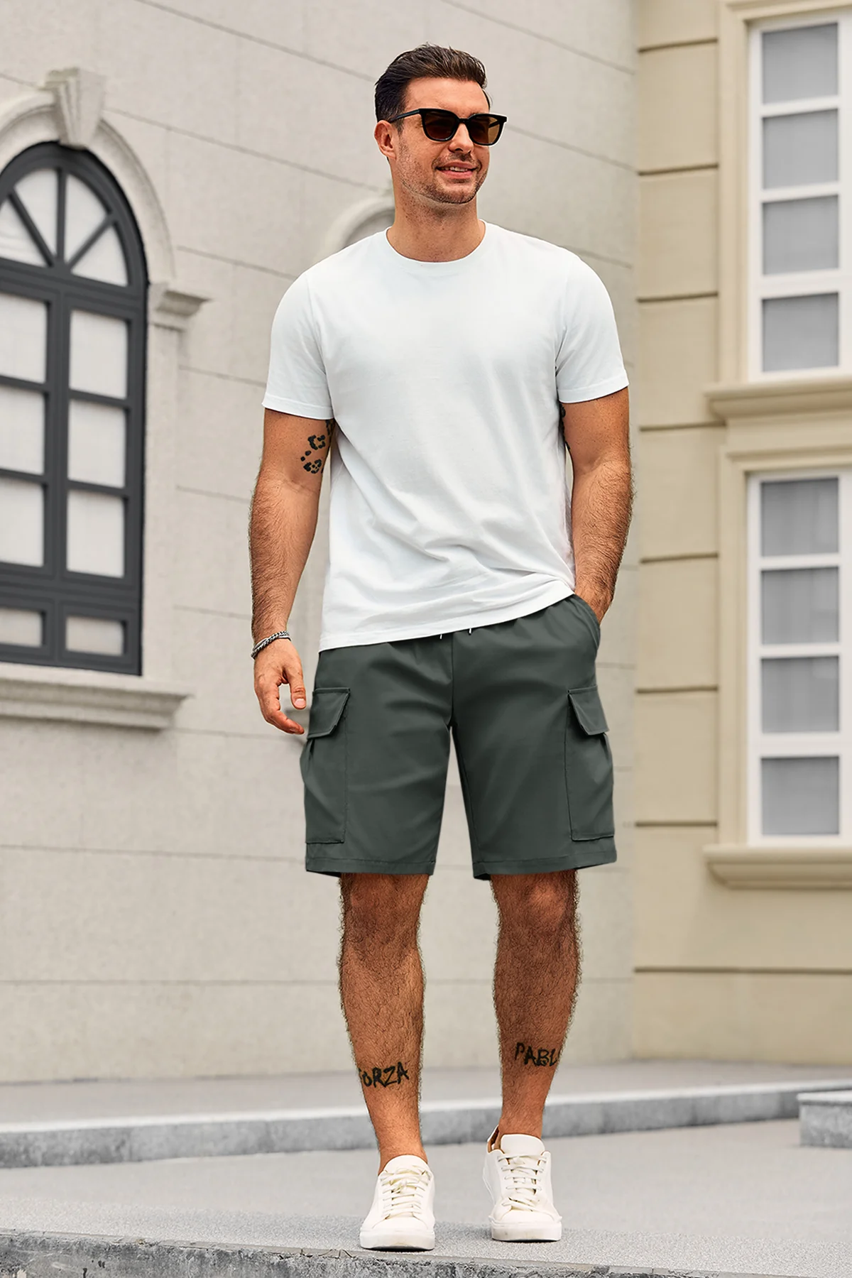 Experience ultimate comfort and freedom with these men's casual cargo shorts. Crafted from lightweight, breathable, and flexible fabric, they feature an elastic drawstring waist for a perfect loose fit. With five functional pockets, including two flap cargo pockets, and durable stitching, they are built to last. Ideal for hiking, work, travel, or daily wear, these versatile shorts transition effortlessly to any occasion. Machine washable for easy care.
