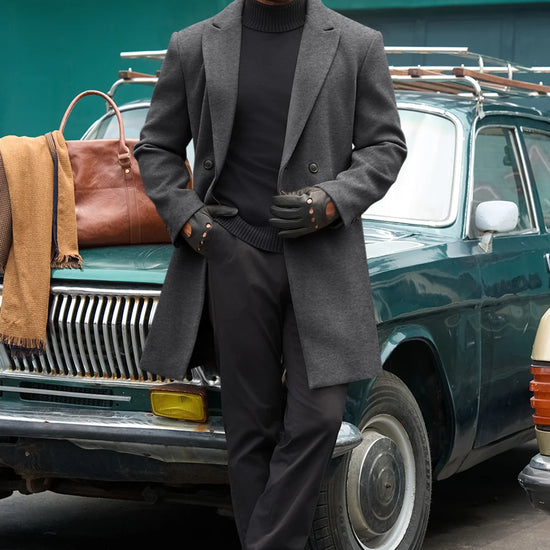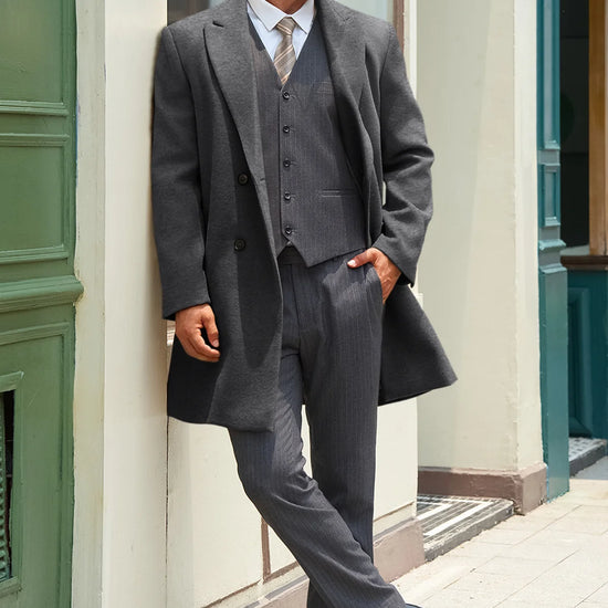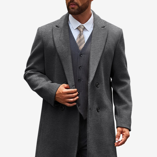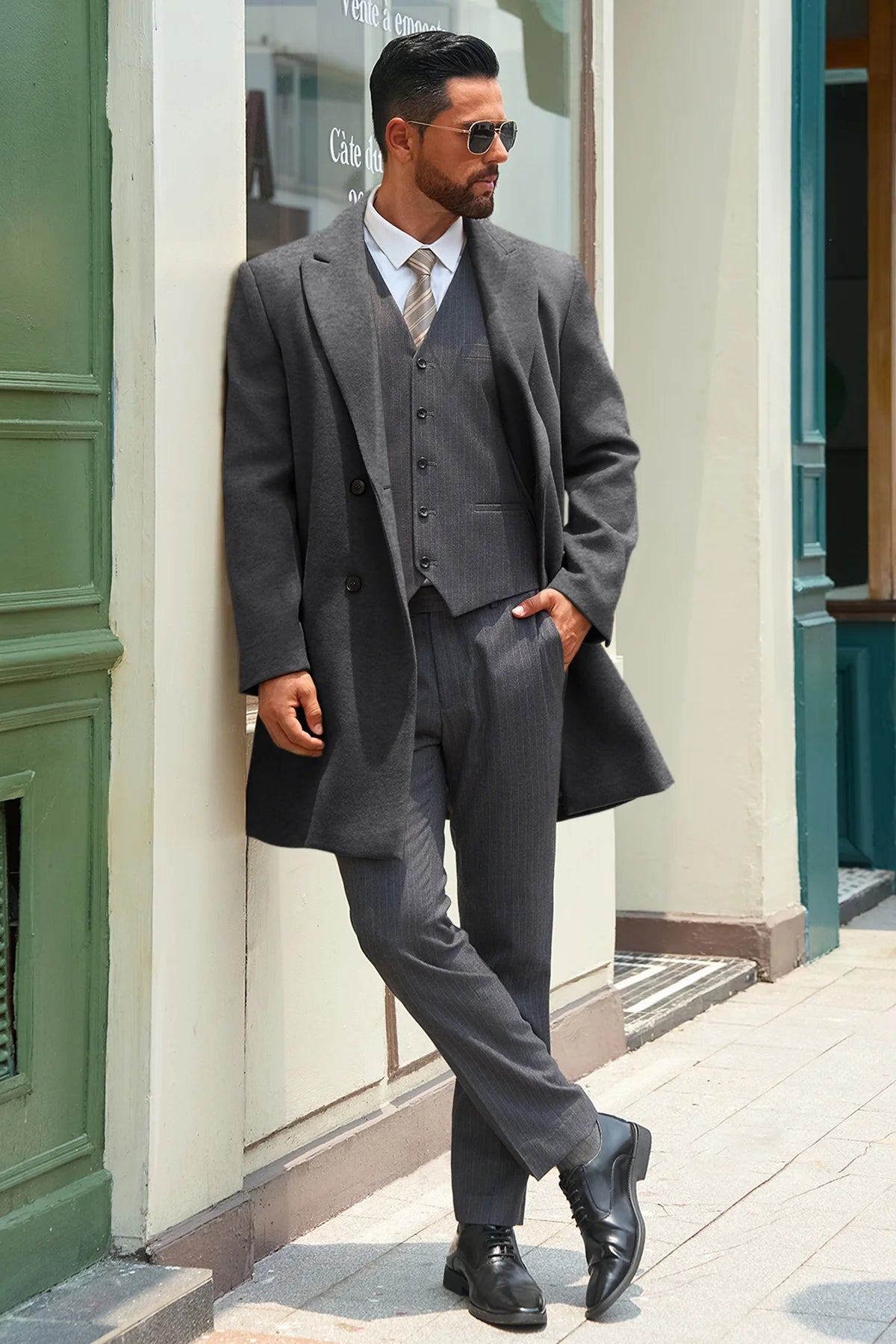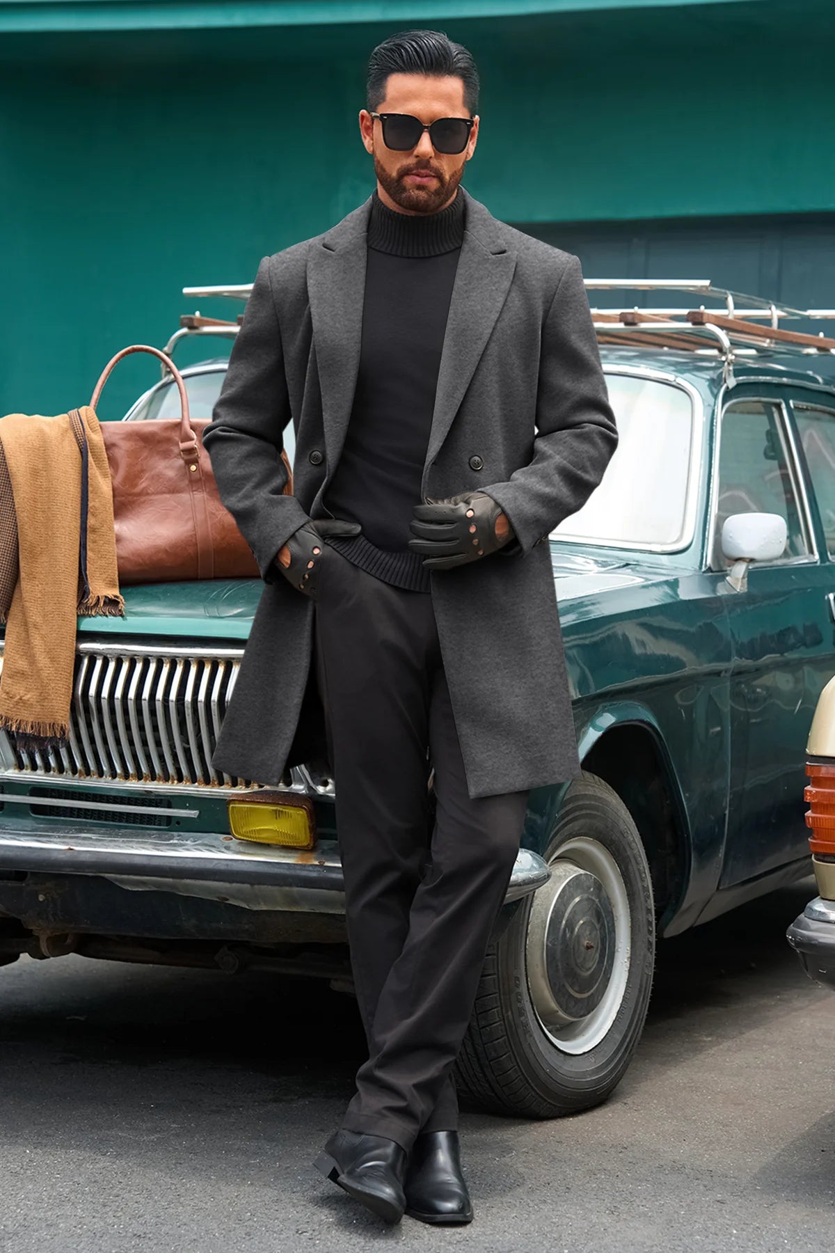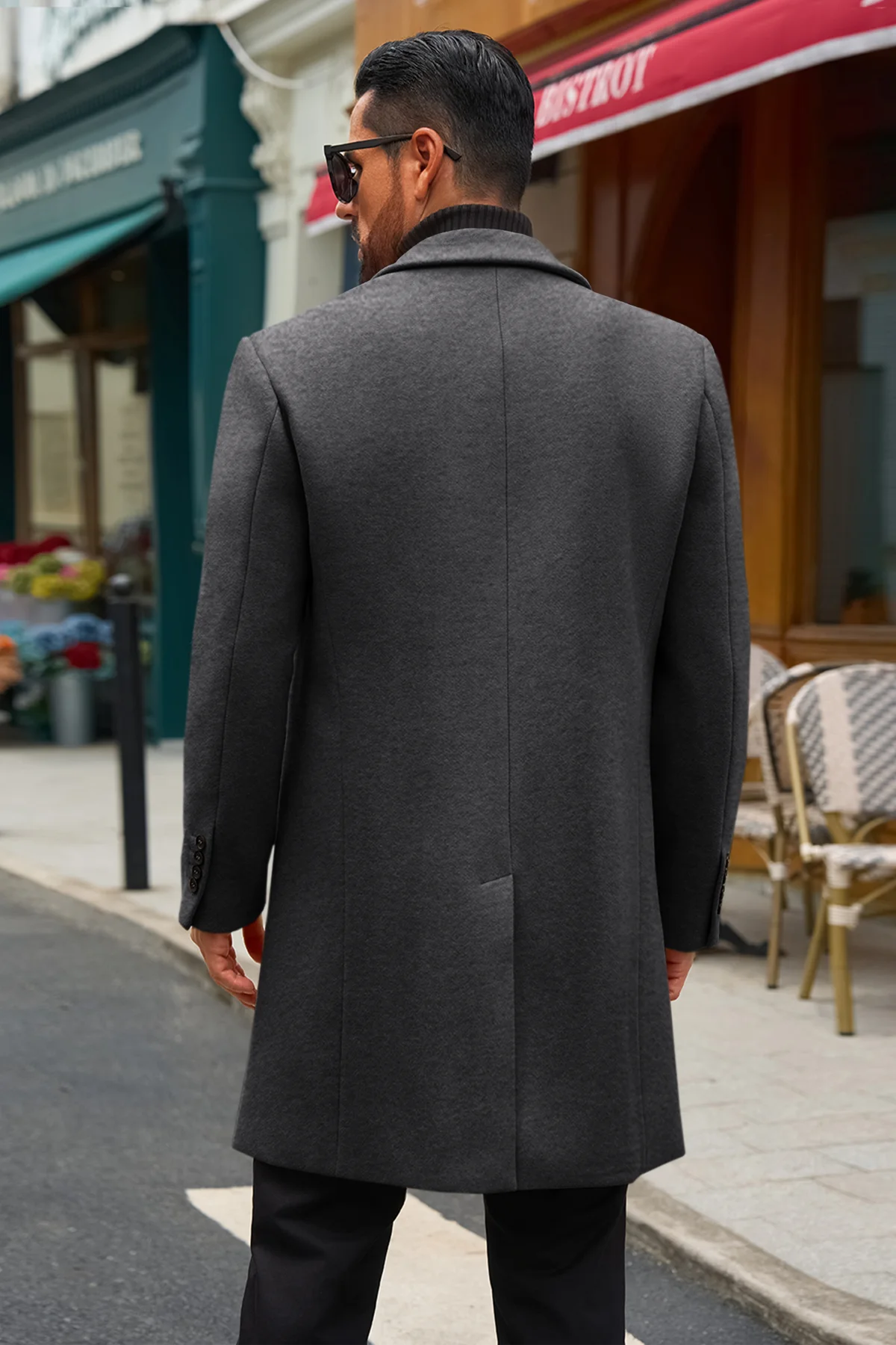 Runcati Mens Dark Grey Mid Long Pea Coat