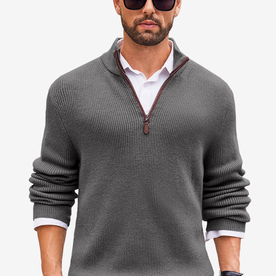Runcati Mens Dark Grey Quarter-Zip Sweater