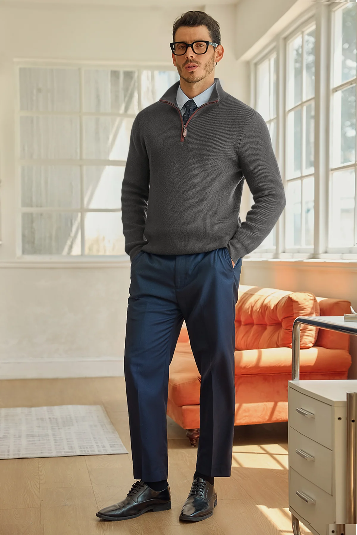 Check out our classic-fit quarter-zip knit sweater! It's made from a soft, lightweight thermal fabric that feels great against your skin. Perfect for fall, spring, and winter, this versatile piece can be worn solo or layered under a jacket. Dress it up for work or keep it casual with jeans—it's an essential for any occasion. Available in multiple vintage colors. Easy care: just hand wash or machine wash, but no bleach! Got questions? Reach out anytime!