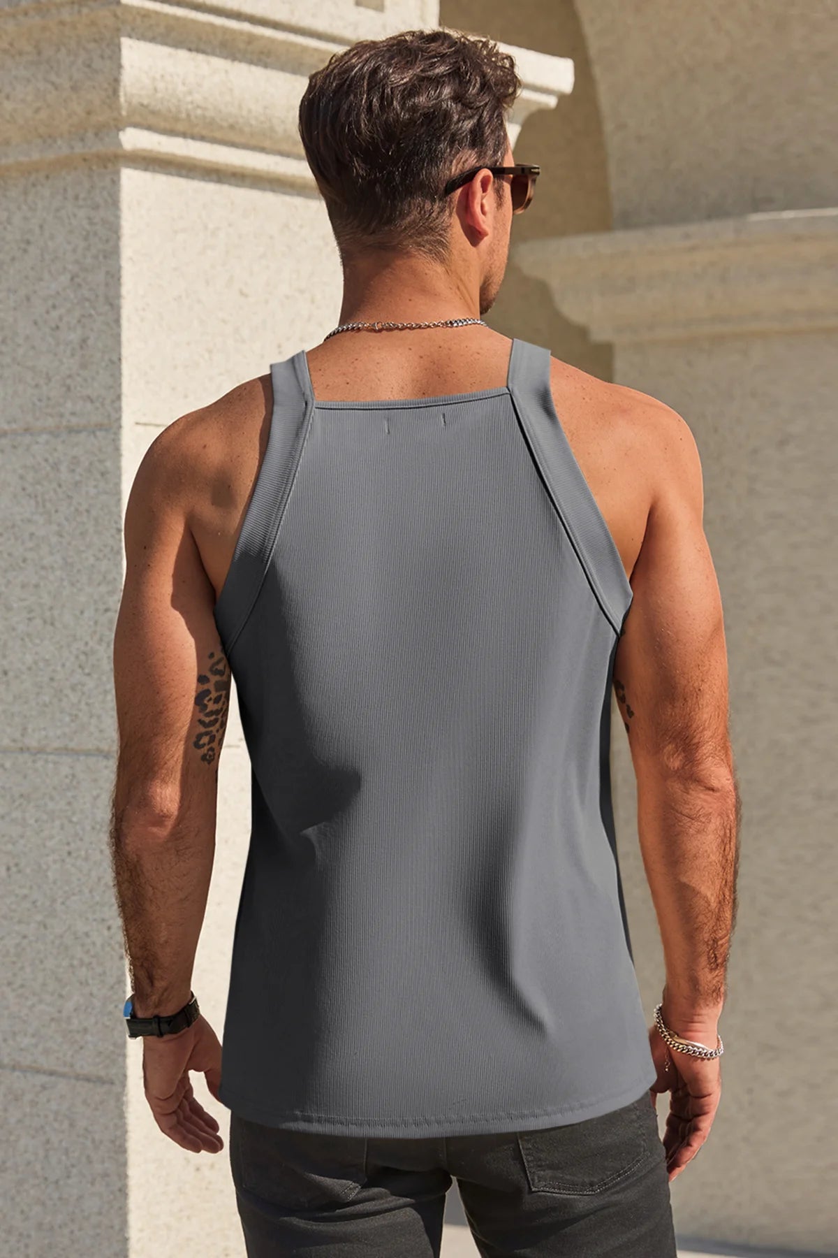 Elevate your physique with the Runcati Men’s Ribbed Knit Tank Top. Designed for the confident man, this slim-fit muscle shirt features a unique square neck and a sophisticated ribbed texture. Whether you're hitting the gym or the beach, its breathable, high-stretch fabric ensures you move with ease while maintaining a sharp, modern edge.