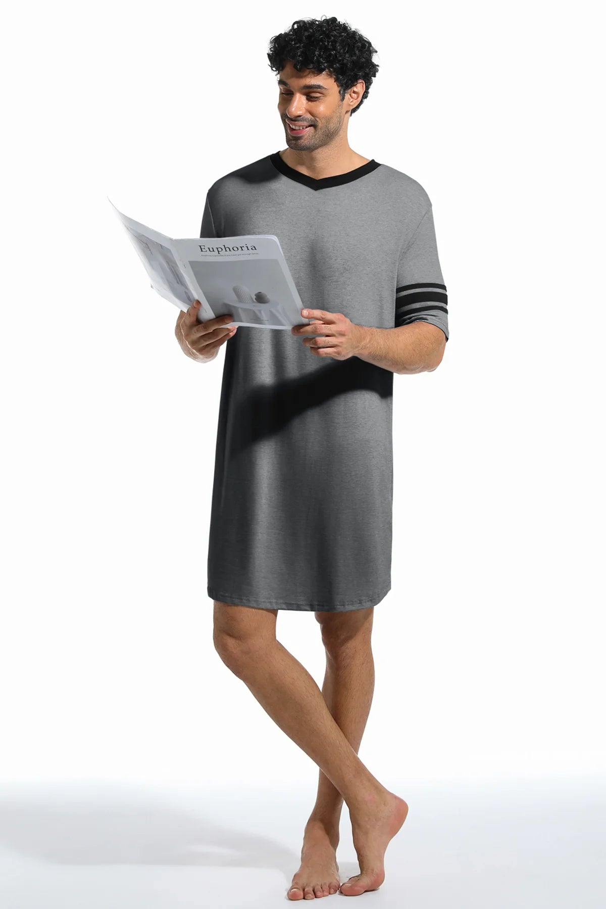 Runcati Men's Short Sleeve Nightshirt is designed for unparalleled comfort. Crafted from a premium, soft-touch blend fabric, it seamlessly bridges the gap between sleepwear and lounge attire. The lightweight, breathable fabric provides freedom of movement and just the right amount of coverage, making it your perfect companion for warm summer nights, leisurely weekends, and year-round relaxation at home.