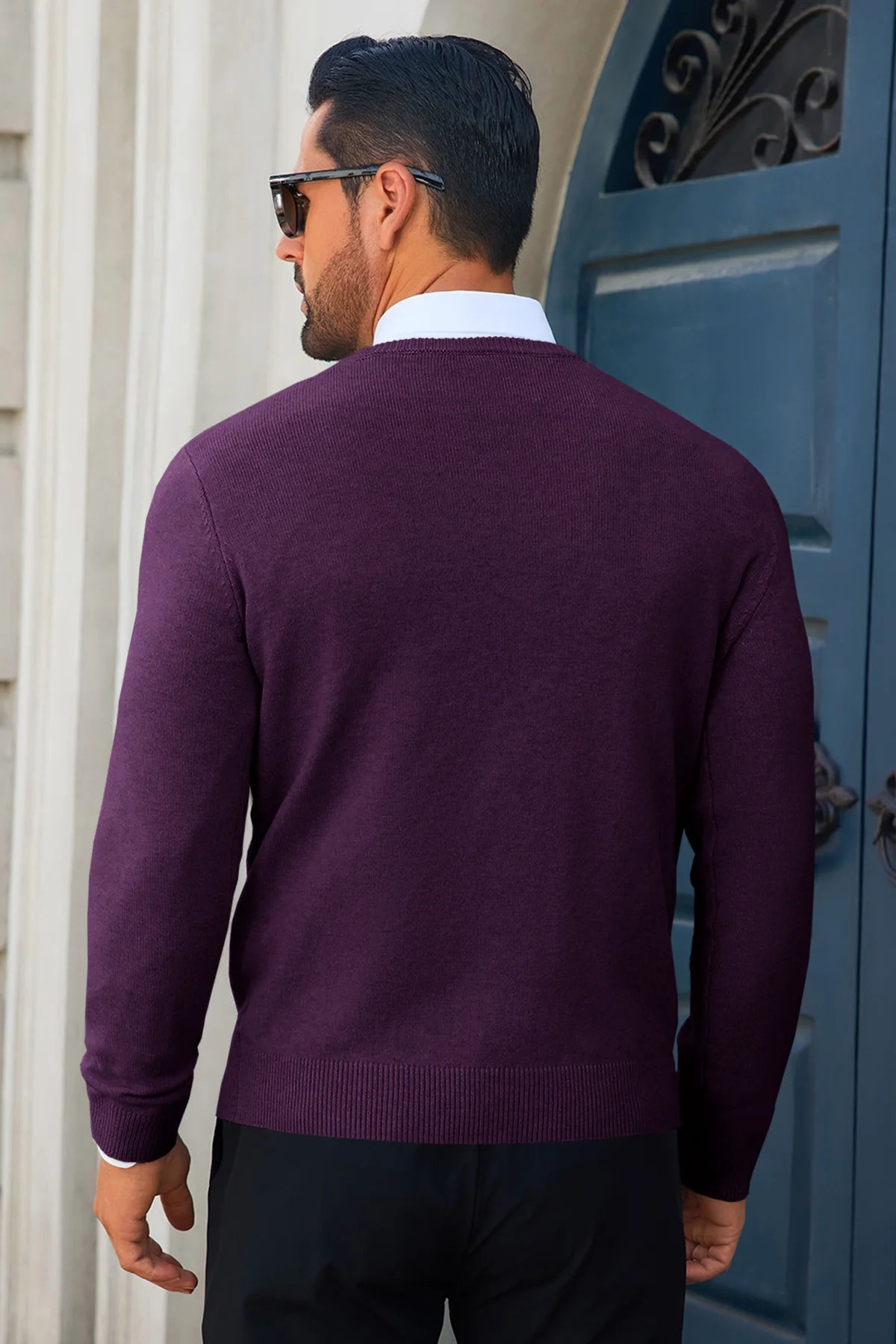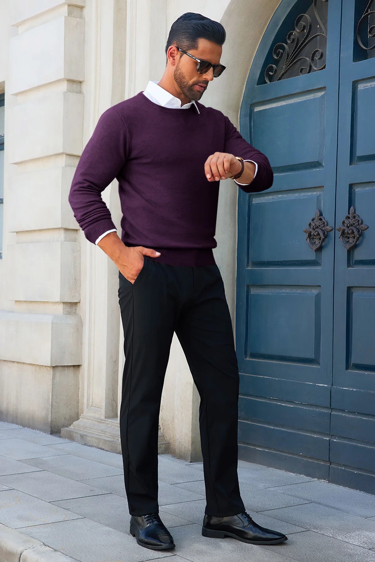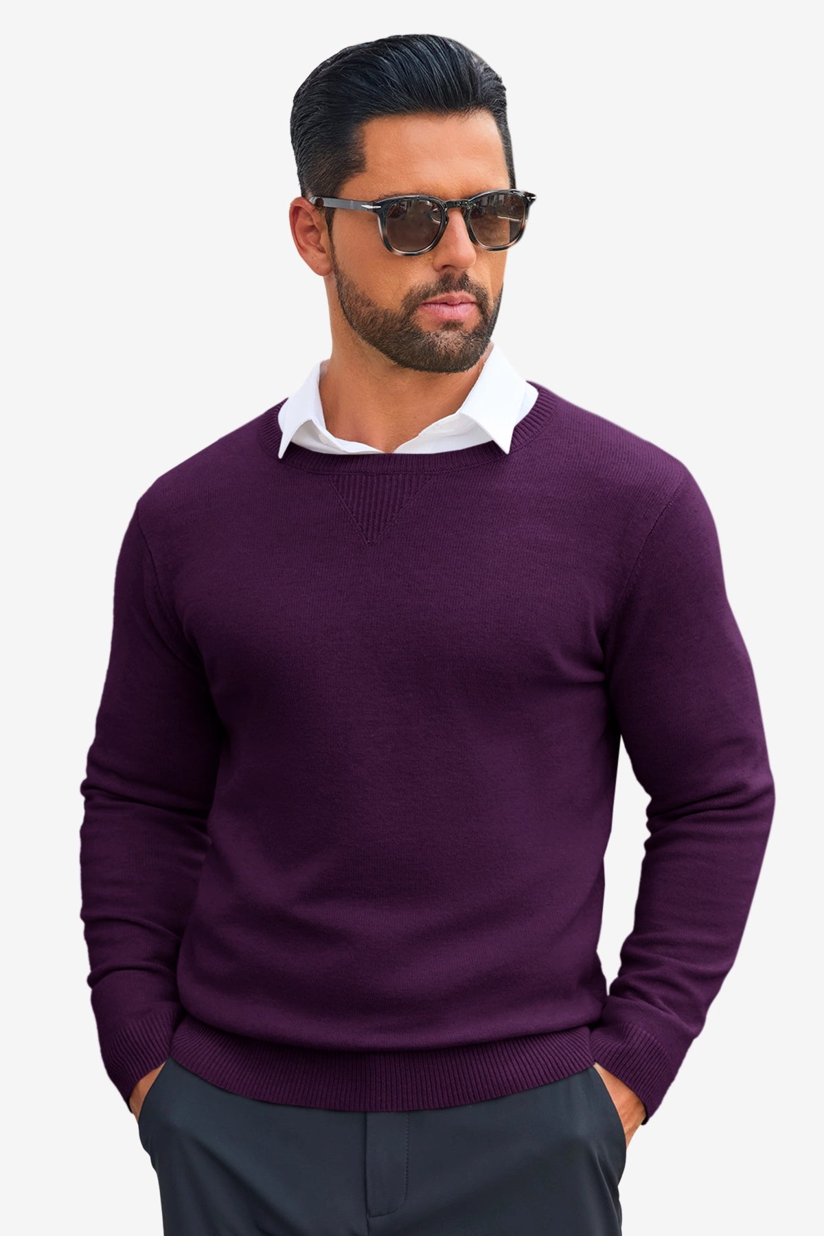 Experience the perfect blend of comfort and sophistication with our Runcati Mens Dark Purple Crewneck Sweaters. Meticulously crafted from a super-soft, high-quality knit fabric, this crewneck sweater is designed to be your go-to piece for seamlessly transitioning from the office to a weekend outing. Its slim-fit silhouette and timeless design offer a polished look without sacrificing an ounce of comfort.