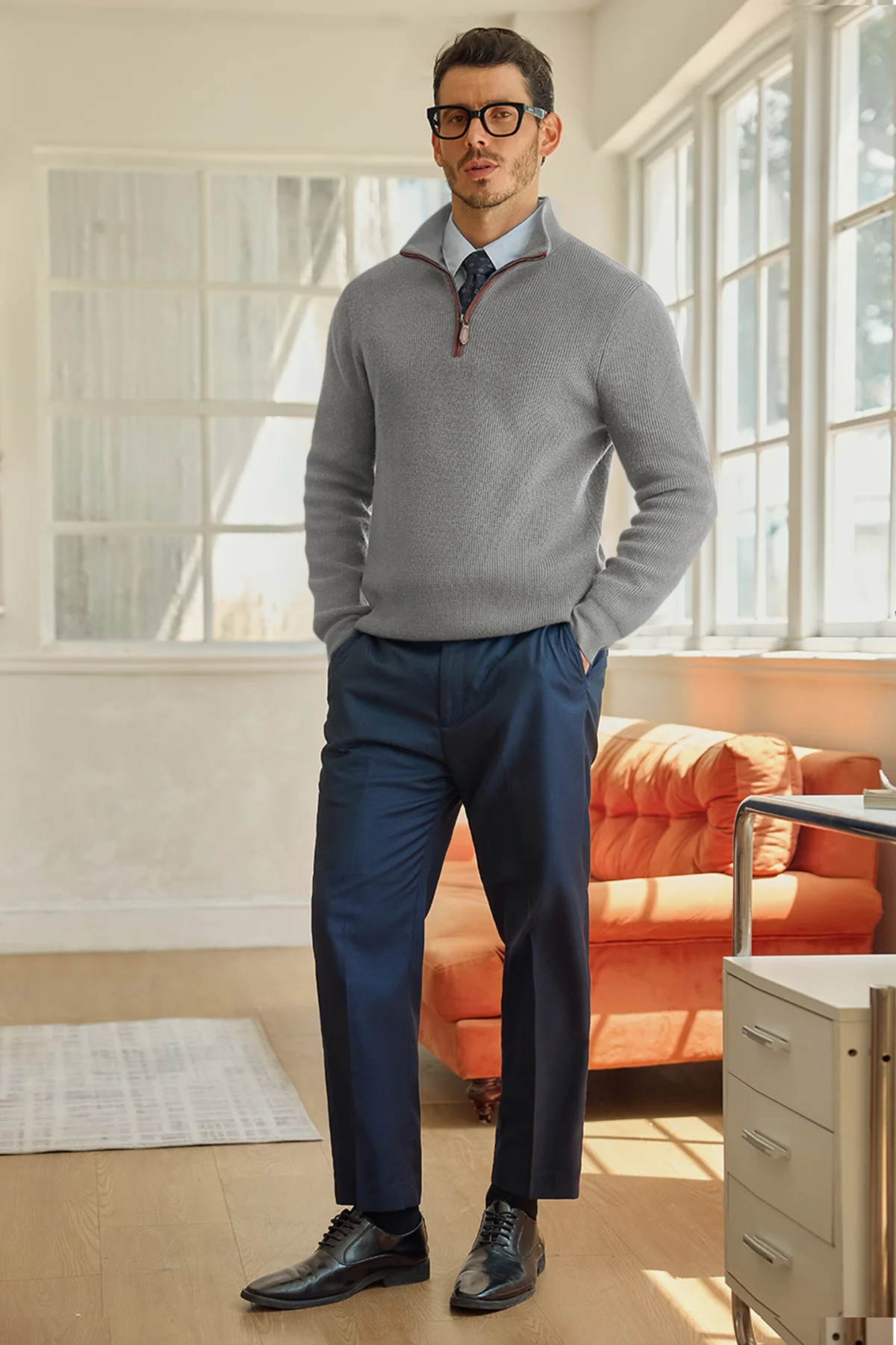 Check out our classic-fit quarter-zip knit sweater! It's made from a soft, lightweight thermal fabric that feels great against your skin. Perfect for fall, spring, and winter, this versatile piece can be worn solo or layered under a jacket. Dress it up for work or keep it casual with jeans—it's an essential for any occasion. Available in multiple vintage colors. Easy care: just hand wash or machine wash, but no bleach! Got questions? Reach out anytime!