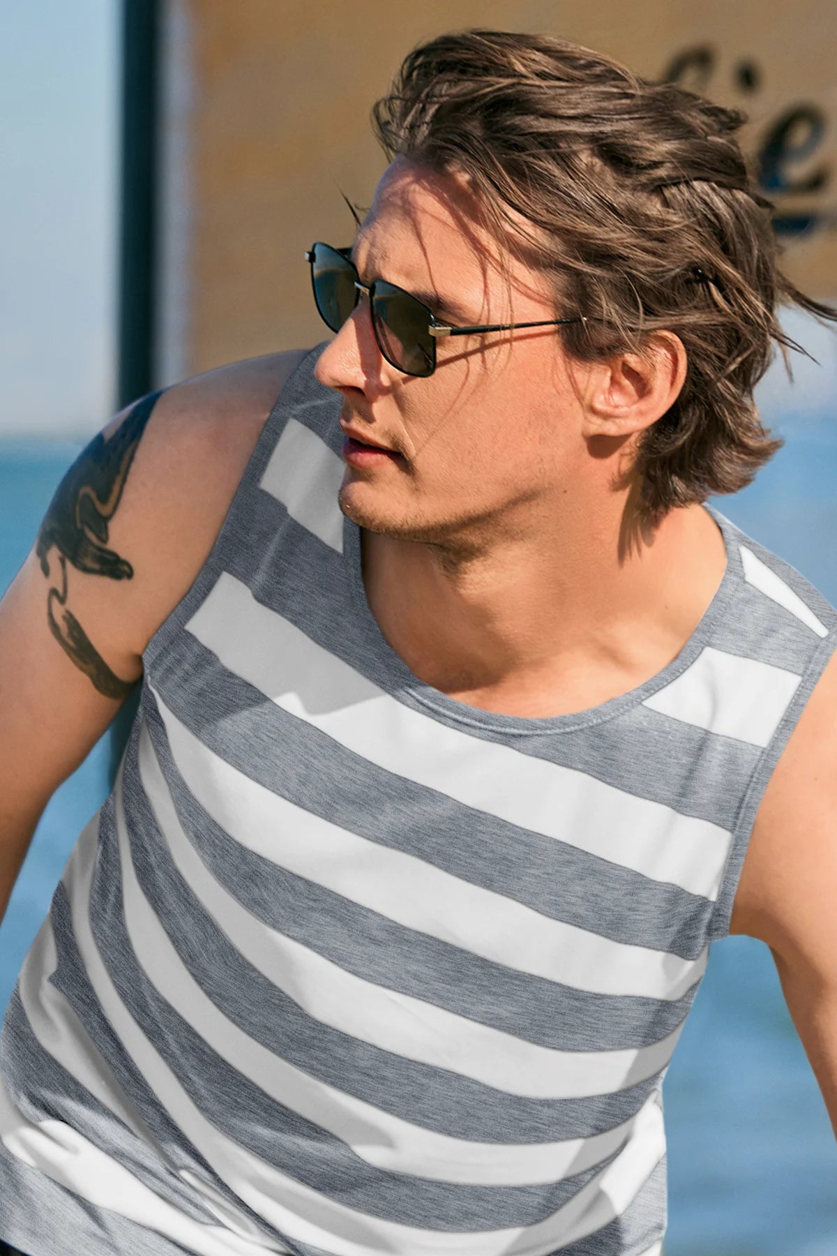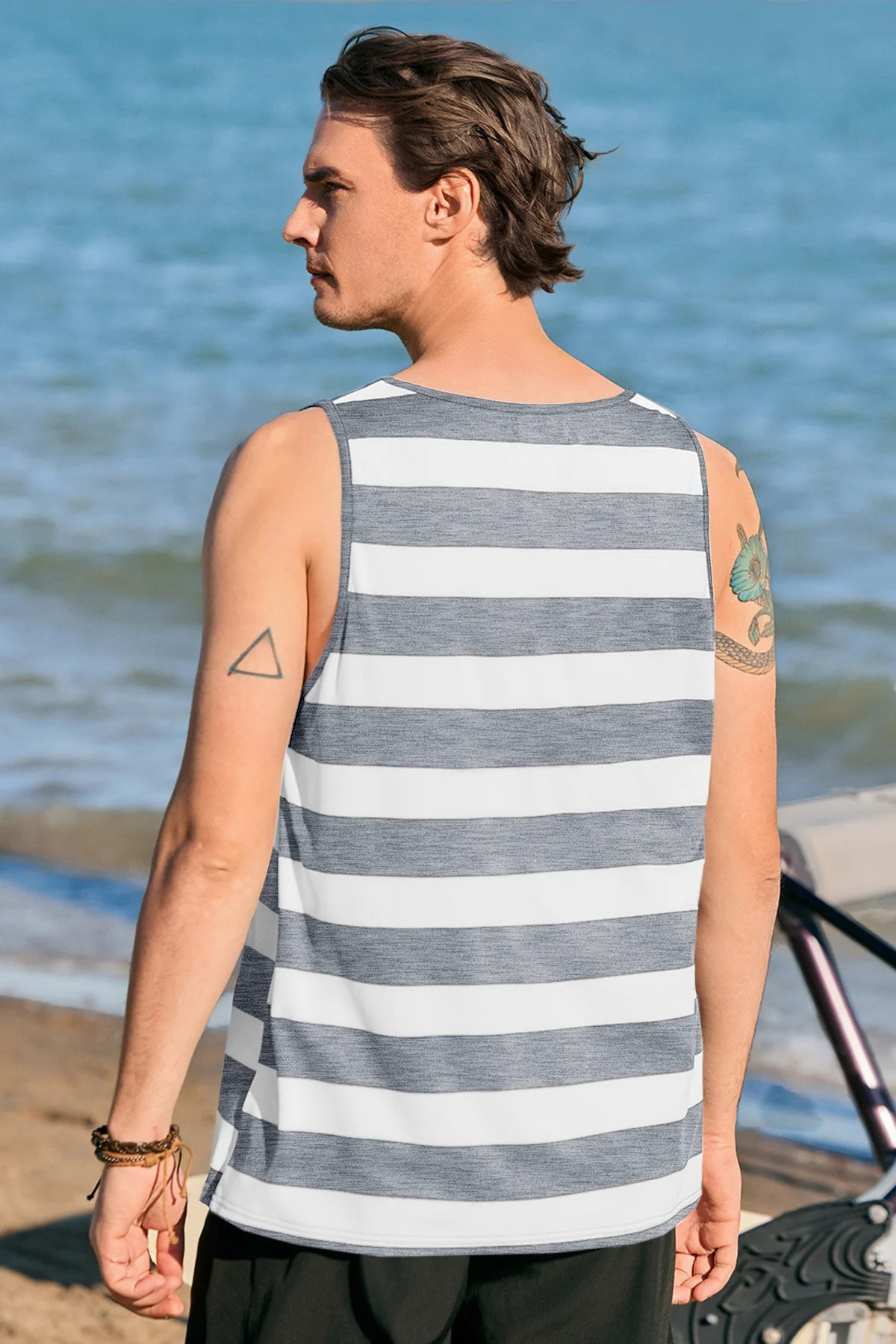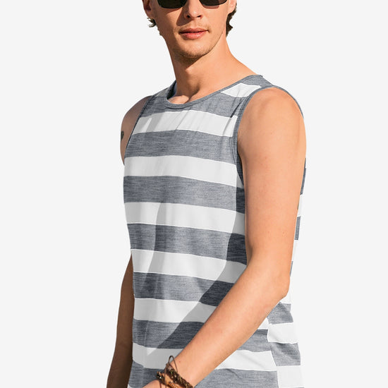 Elevate your active and casual wardrobe with Runcati Men’s Striped Workout Tank Tops—designed for performance and style. Made from a 95% polyester, 5% spandex blend, this sleeveless scoop neck tee features color-block collar/cuffs, wide contrast stripes, and roomy arm holes for free movement. Perfect for gym sessions, beach days, yard work, or lounging, it blends comfort and versatility seamlessly.