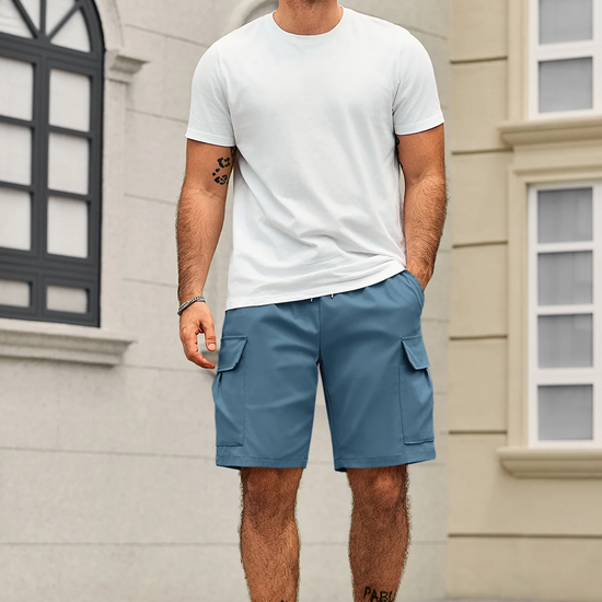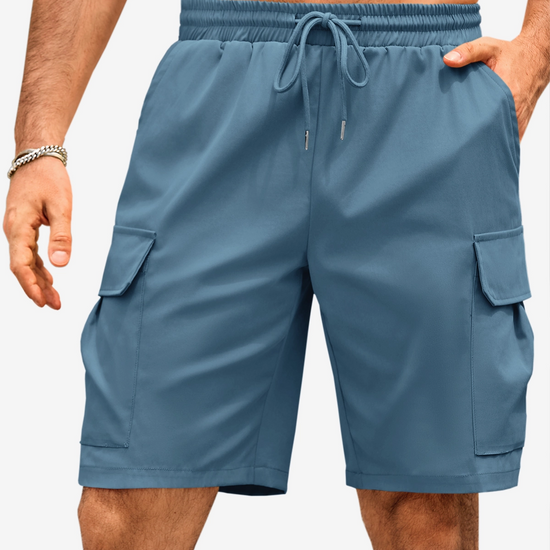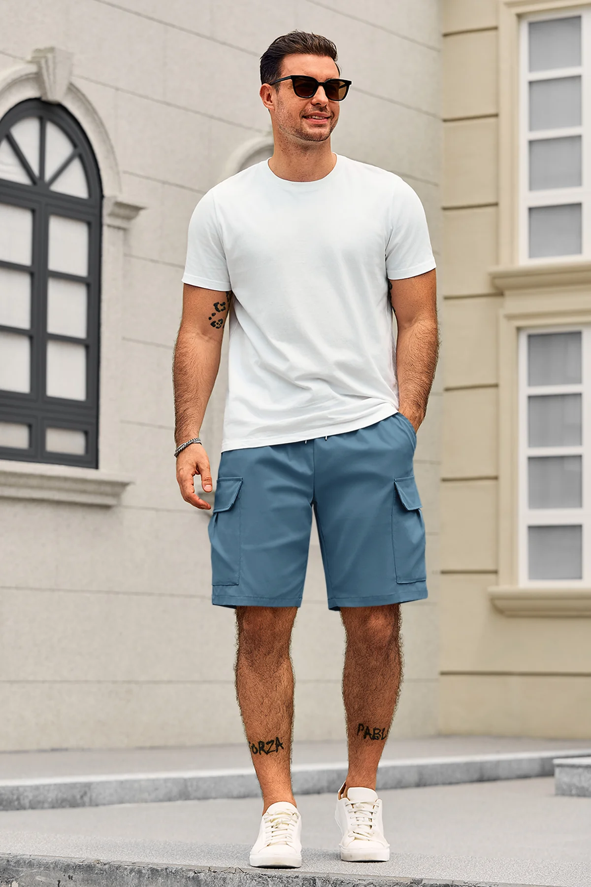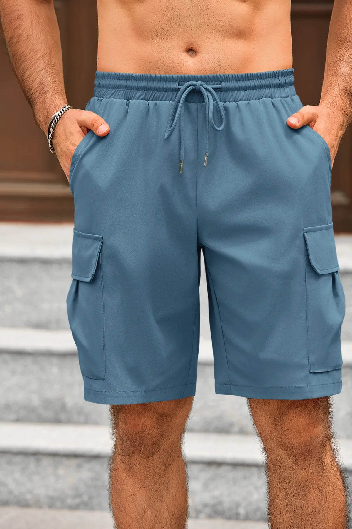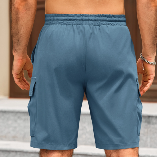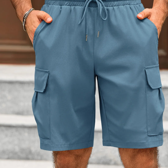 Experience ultimate comfort and freedom with these men's casual cargo shorts. Crafted from lightweight, breathable, and flexible fabric, they feature an elastic drawstring waist for a perfect loose fit. With five functional pockets, including two flap cargo pockets, and durable stitching, they are built to last. Ideal for hiking, work, travel, or daily wear, these versatile shorts transition effortlessly to any occasion. Machine washable for easy care.