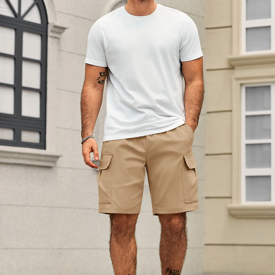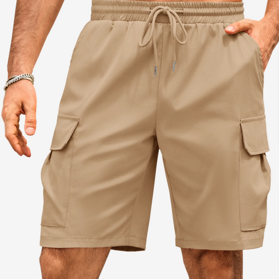 Experience ultimate comfort and freedom with these men's casual cargo shorts. Crafted from lightweight, breathable, and flexible fabric, they feature an elastic drawstring waist for a perfect loose fit. With five functional pockets, including two flap cargo pockets, and durable stitching, they are built to last. Ideal for hiking, work, travel, or daily wear, these versatile shorts transition effortlessly to any occasion. Machine washable for easy care.