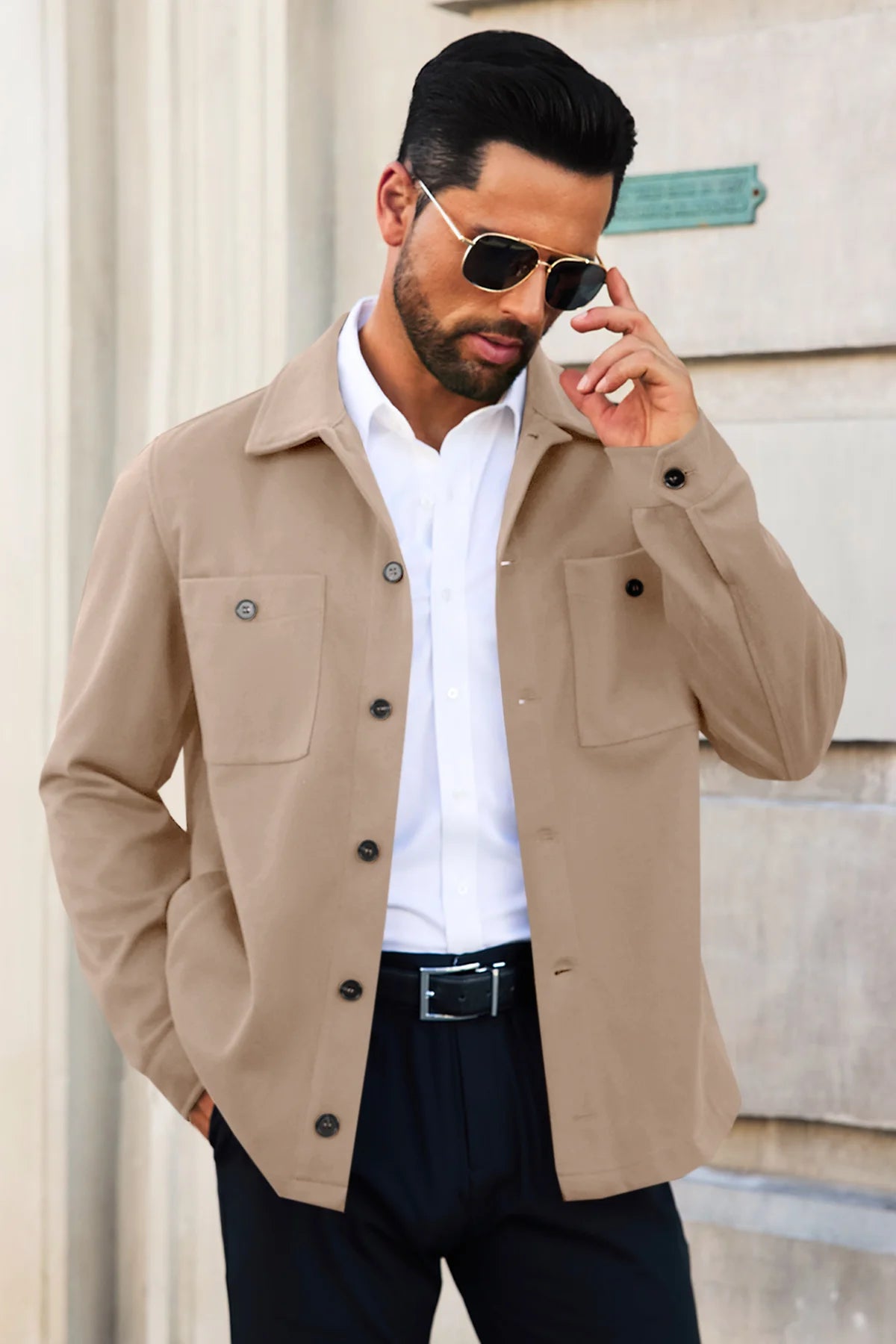Check out this casual work shirt jacket! It's got a spread collar and long sleeves for extra warmth in cooler weather. With button closure and handy chest and side pockets, it's perfect for keeping your essentials close. Made from a soft, wool-like fabric, it’s thick and cozy without pilling or shrinking. Dress it up or down with shirts, tees, or pants. Ideal for work, dates, or weekends. Easy to care for—just hand or machine wash! Available in various colors to match your style.