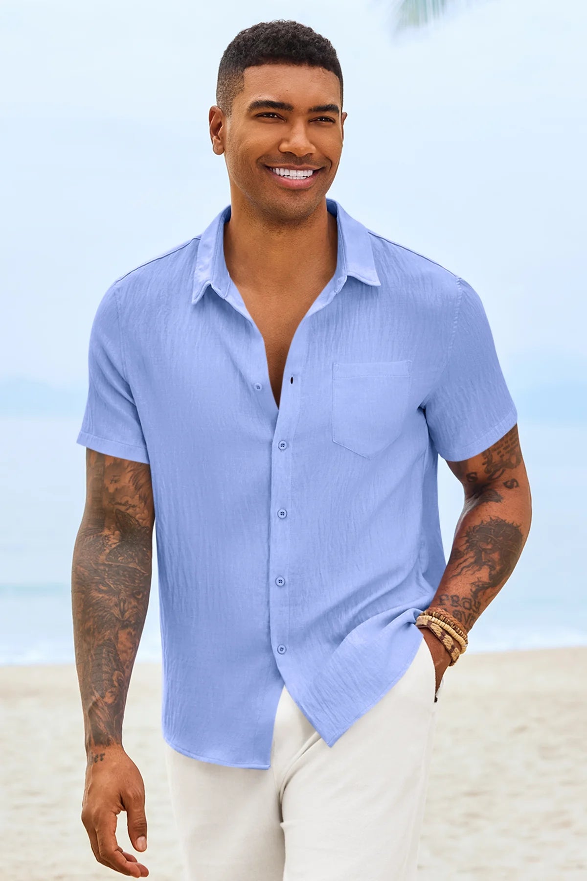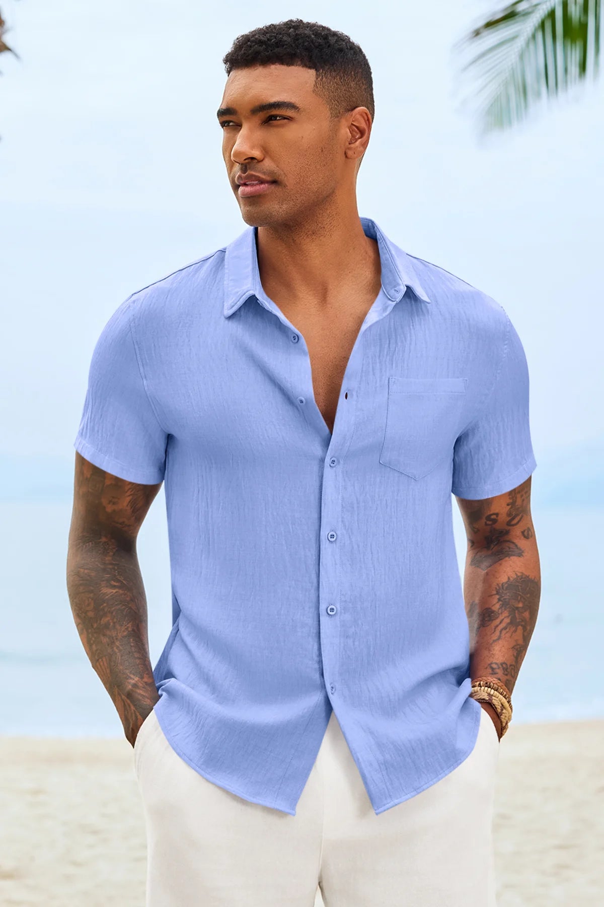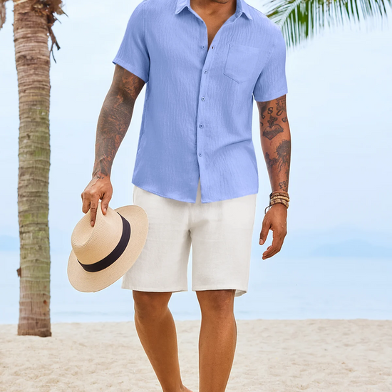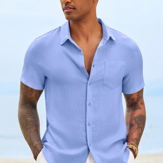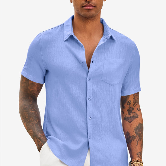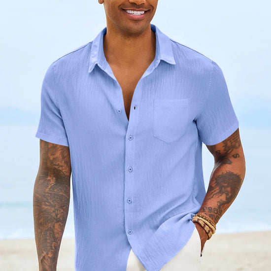 Introducing the mens casual shirt – a perfect blend of style and comfort! Made from light blens fabric, it’s designed for a relaxed fit with a classic short sleeve, button-down, and spread collar. It’s great for weddings or casual beach outings. Available in vibrant colors like Black, White, Sky Blue, and more, this shirt is a must-have for any wardrobe!