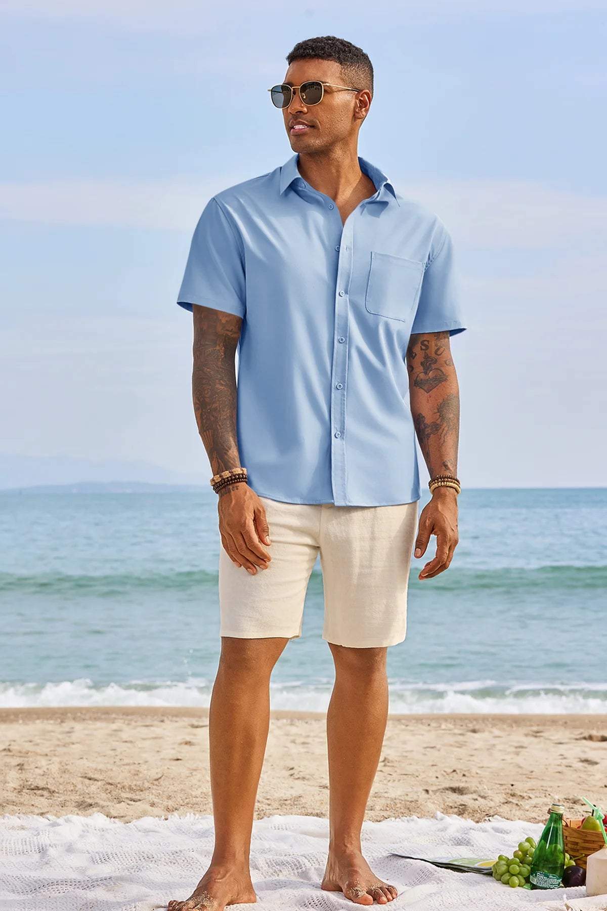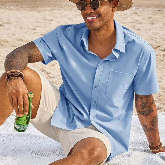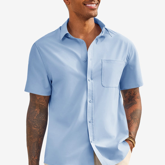 Runcati Mens Light Blue Short Sleeve Casual Dress Shirt