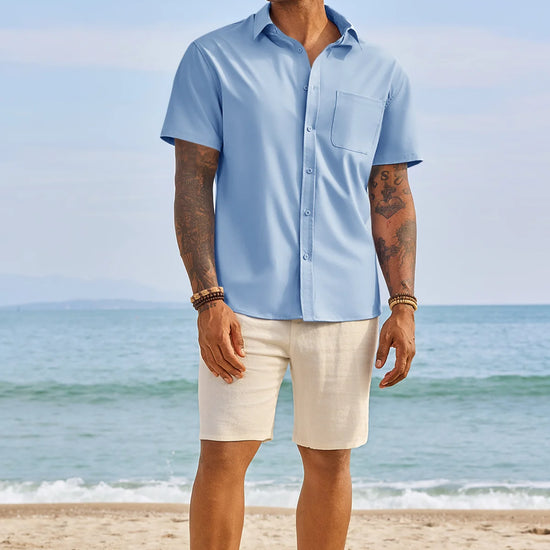 Discover the perfect balance of professional style and relaxed comfort with this Runcati men's short sleeve dress shirt. Designed with a modern untucked length, this solid-colored button-down features a crisp turn-down collar and a versatile regular fit. It’s the ultimate summer essential for the man who demands a sharp look without the effort.
