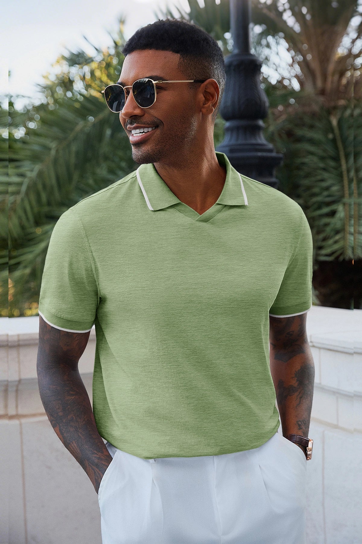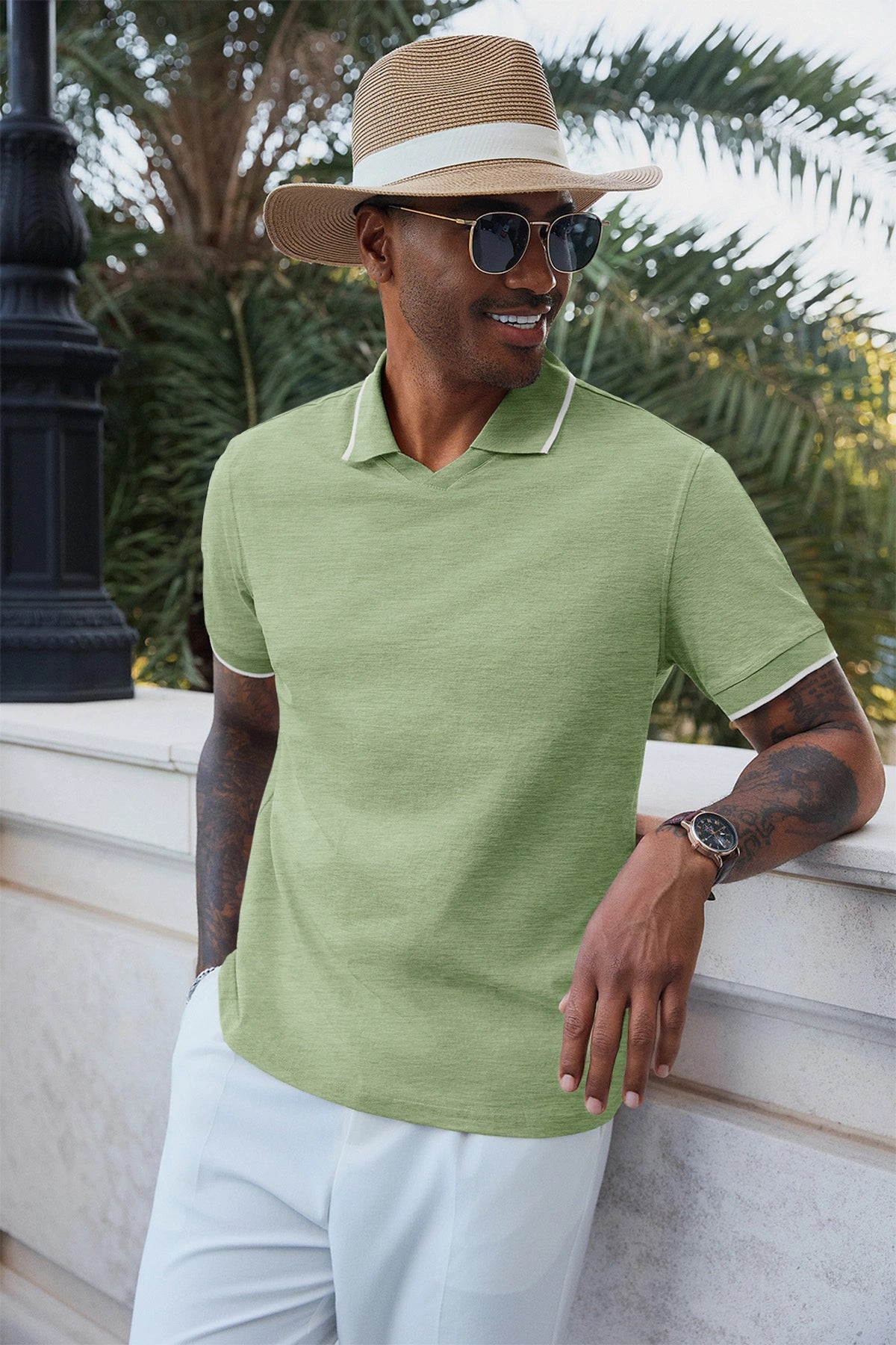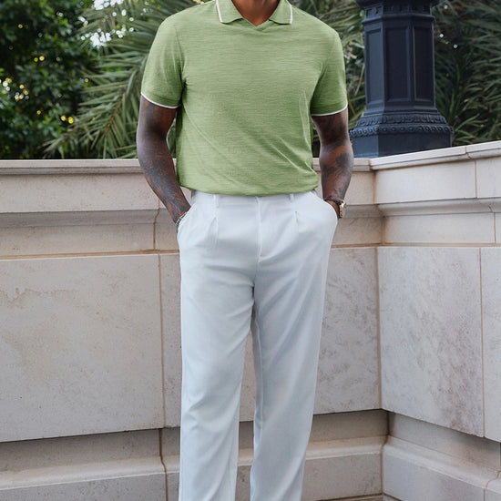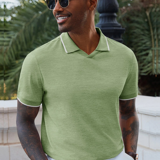 Elevate your wardrobe with Runcati Men’s Vintage V-Neck Polo Shirts—crafted for old-money charm and all-day comfort. Made from 100% polyester, this short-sleeve knit golf shirt features a button-free lapel, contrast color splicing, and ribbed detailing for a retro-modern vibe. Lightweight, stretchy, and wrinkle-resistant, it’s perfect for office days, golf outings, dates, or casual vacations, blending versatility with timeless style.