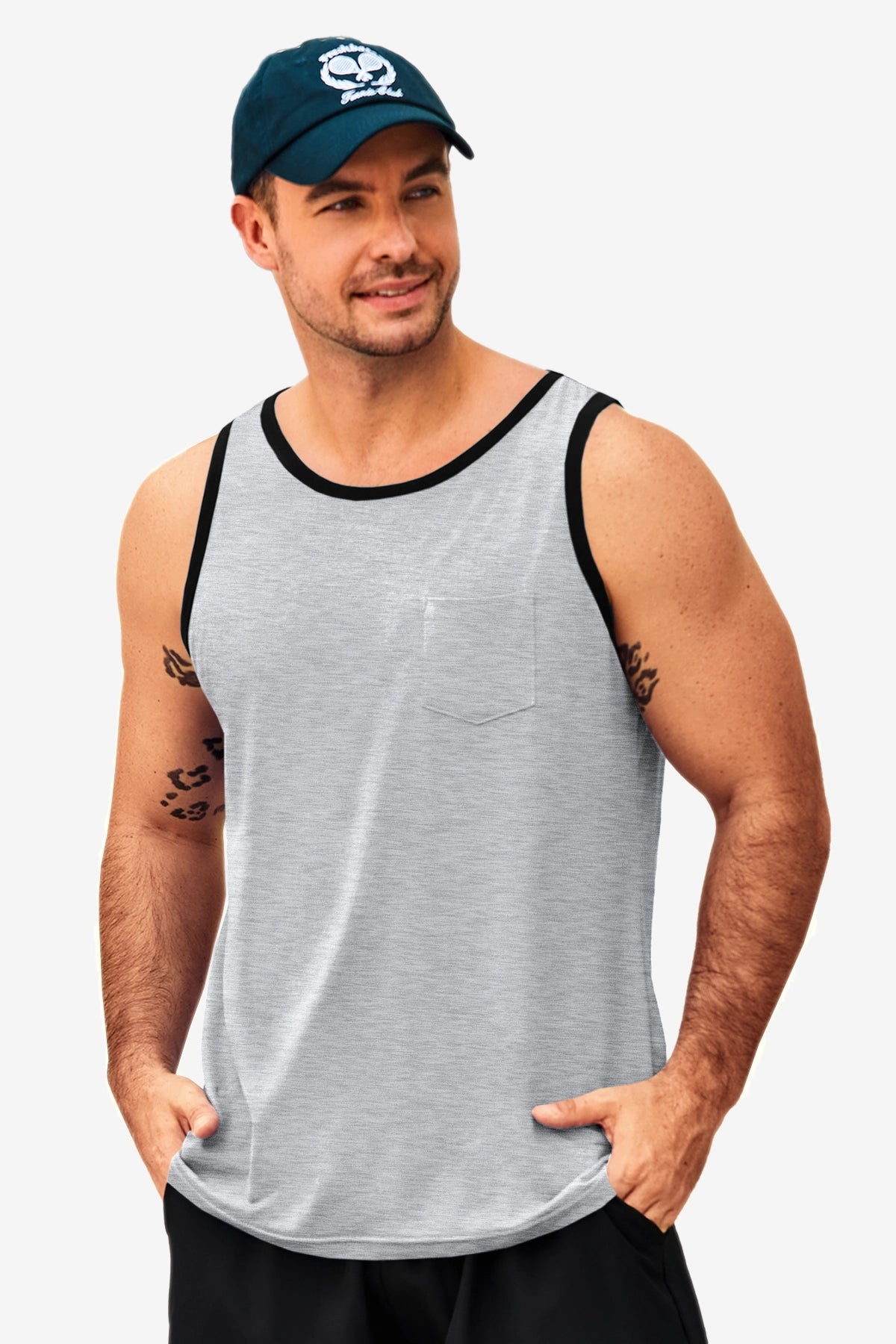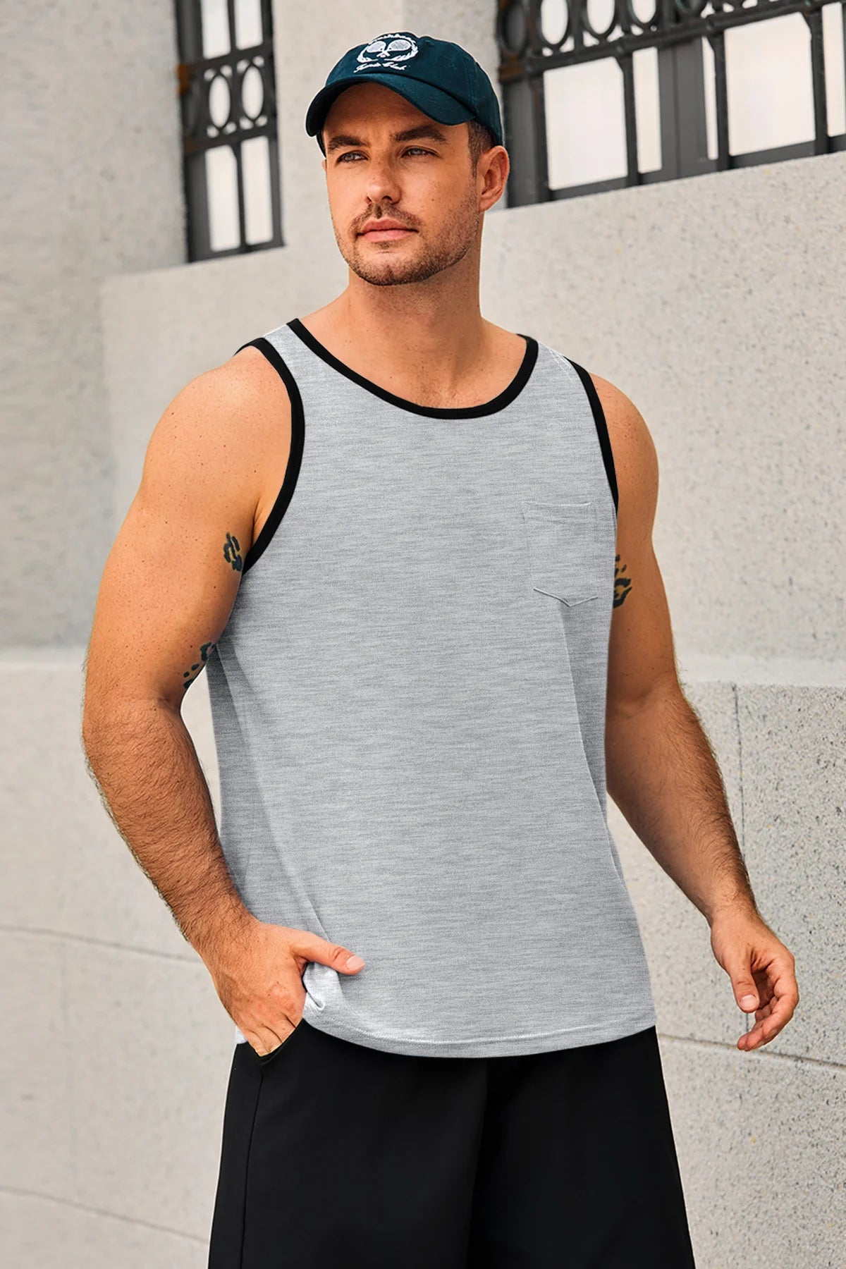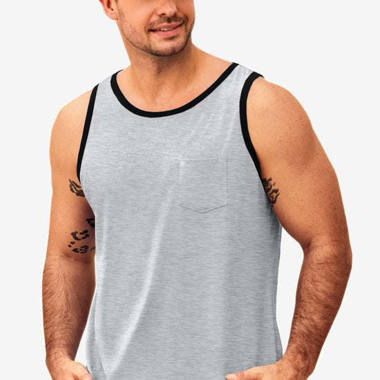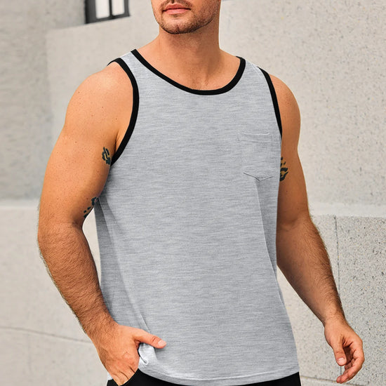 Men's workout athletic tank tops feature crewneck, sleeveless cut-off design, color block, one chest pocket, and loose fit for maximum freedom and comfort—keeping you cool all summer. Crafted from high-quality cotton blend, the sleeveless tee is breathable, soft, lightweight, skin-friendly, and quick-drying to keep you dry during intense workouts.