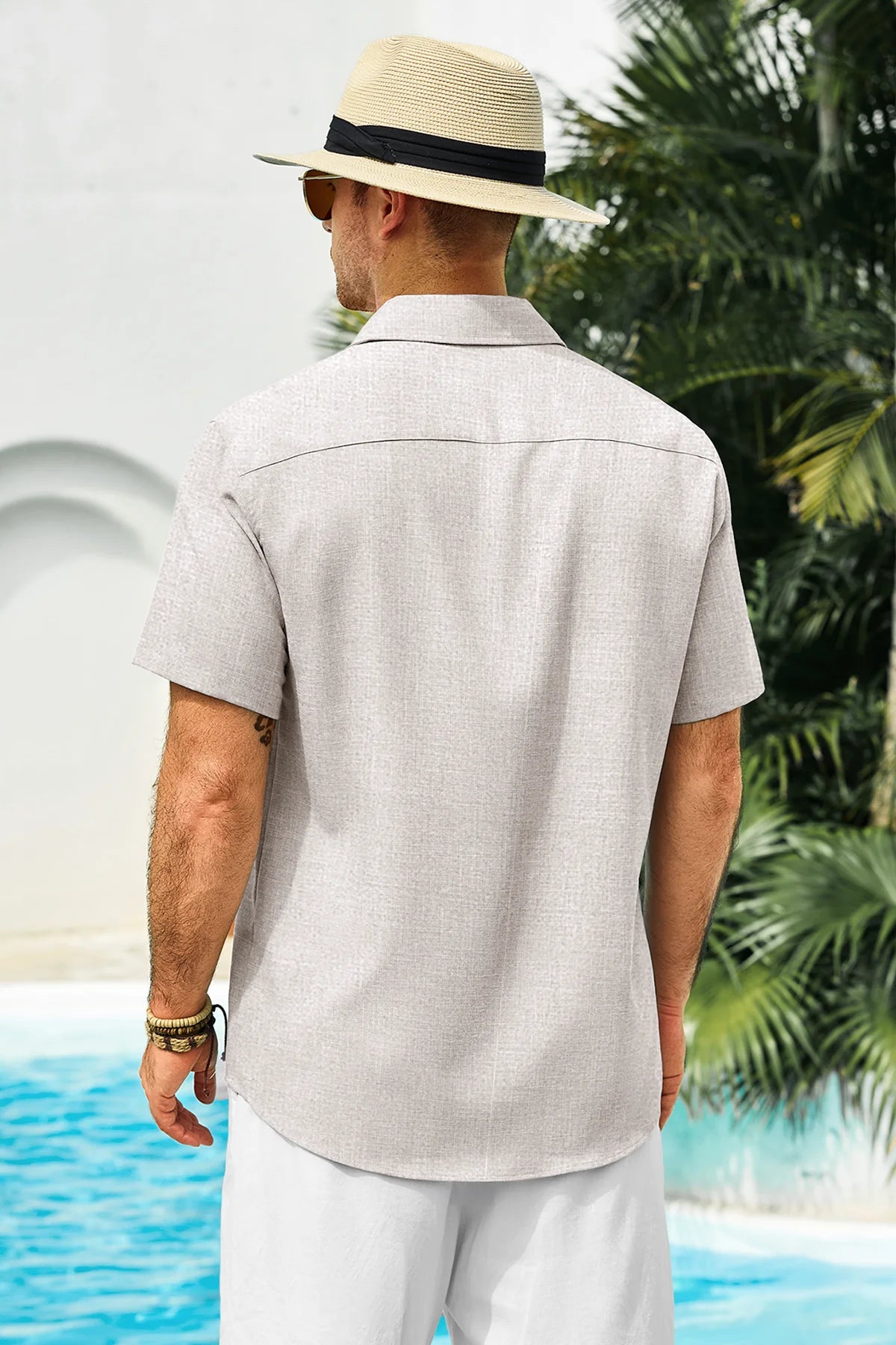 Runcati Mens Light Khaki Short Sleeve Shirts