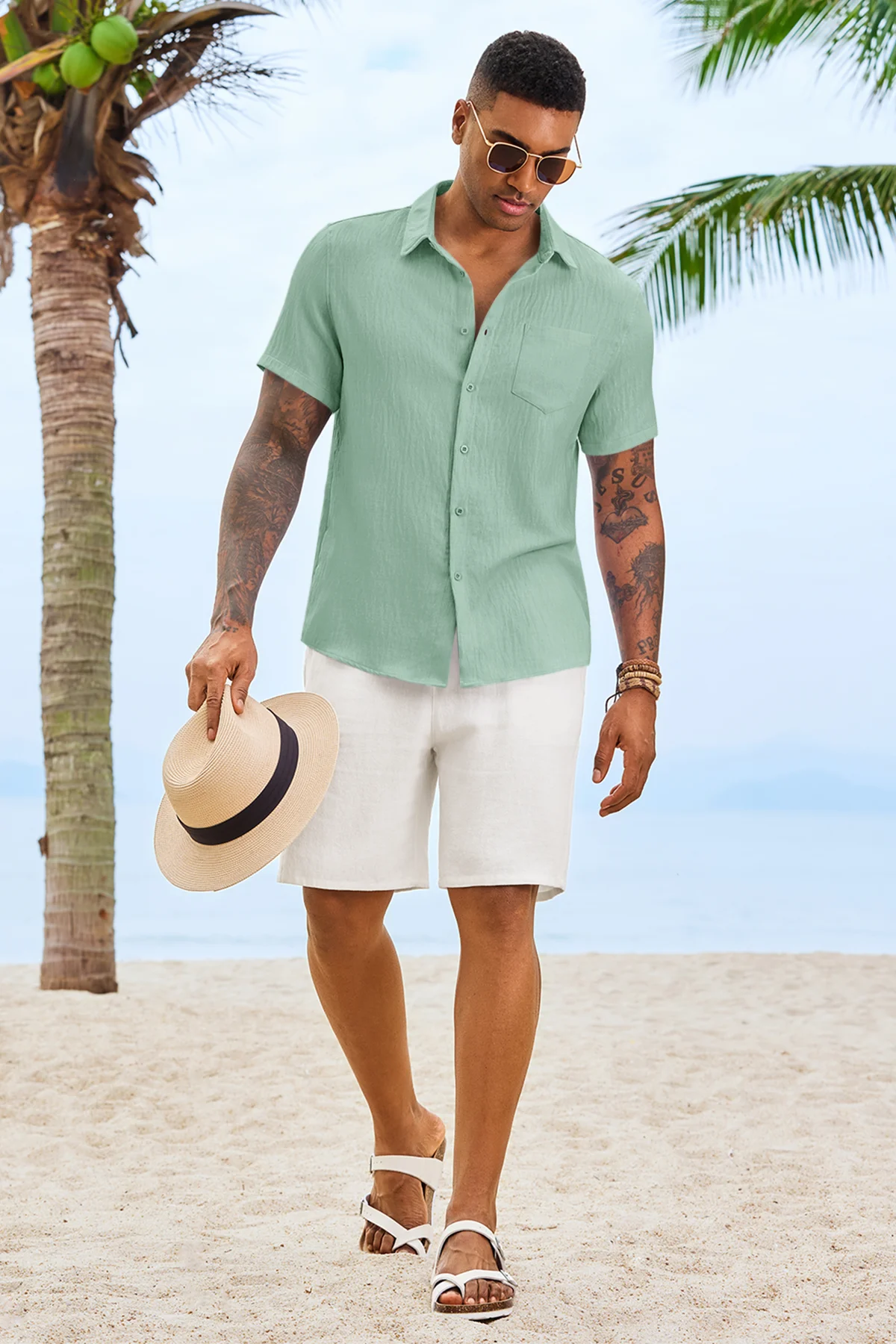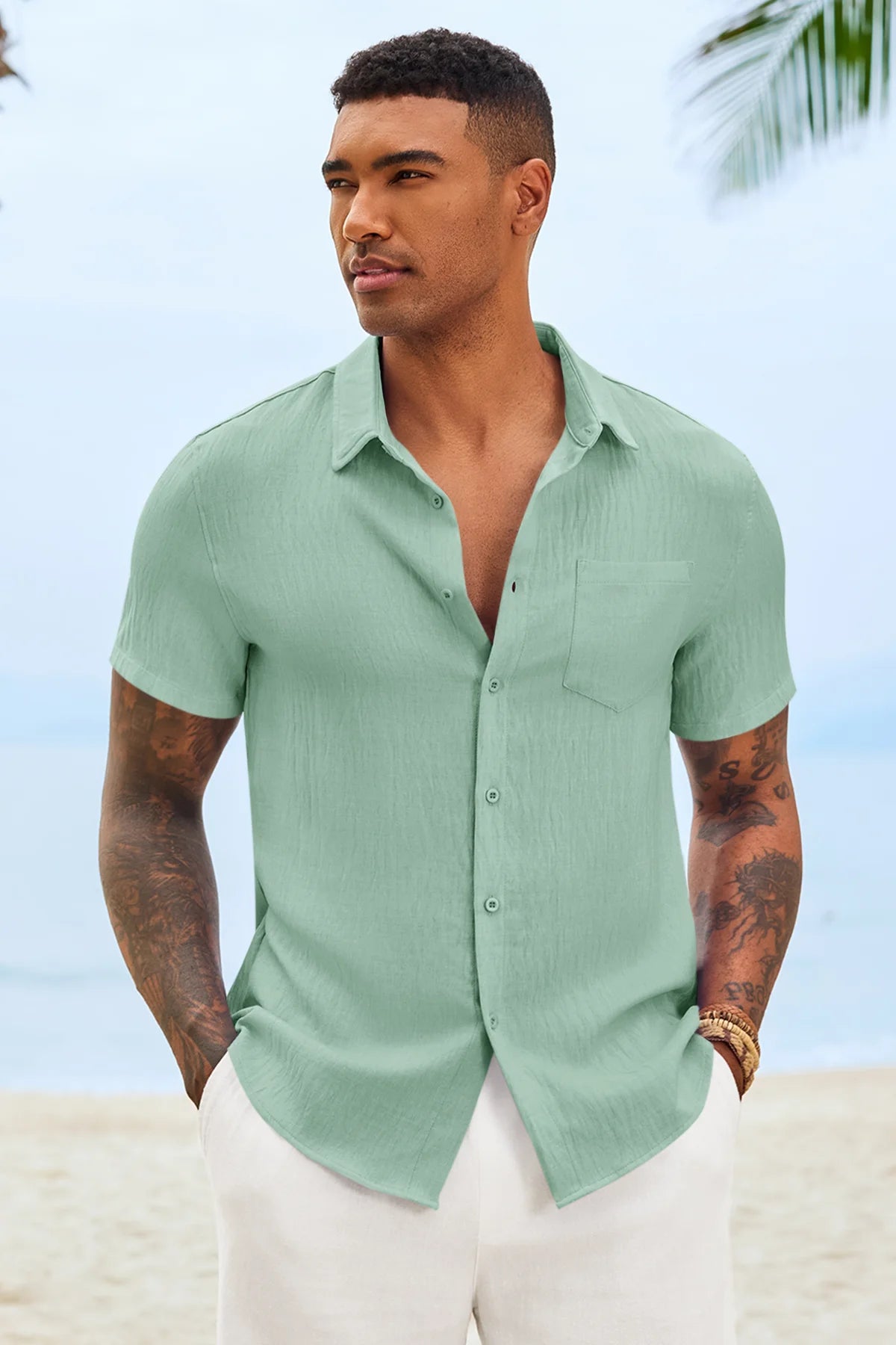 Runcati Mens Mint Button Down Shirts