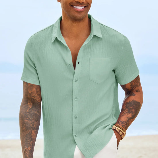 Introducing the mens casual shirt – a perfect blend of style and comfort! Made from light blens fabric, it’s designed for a relaxed fit with a classic short sleeve, button-down, and spread collar. It’s great for weddings or casual beach outings. Available in vibrant colors like Black, White, Sky Blue, and more, this shirt is a must-have for any wardrobe!