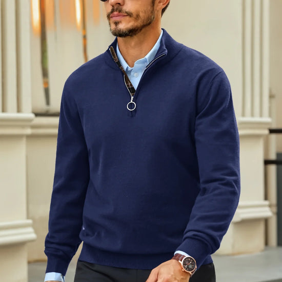 Runcati Mens Navy Blue Quarter-Zip Pullovers Sweaters