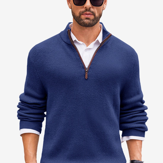 Runcati Mens Navy Blue Quarter-Zip Sweater