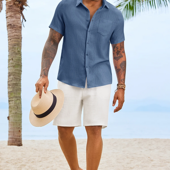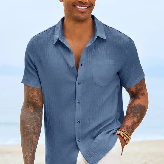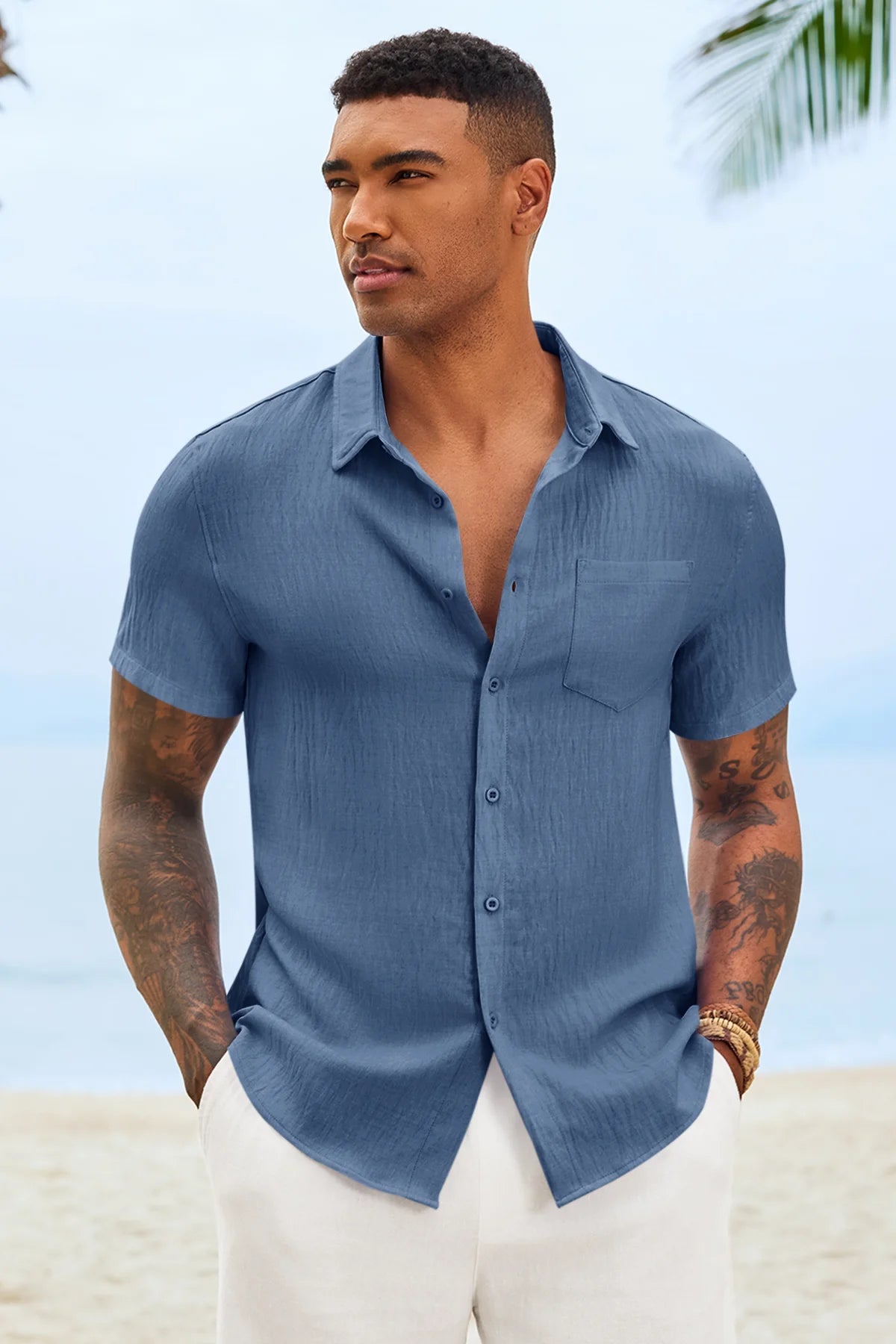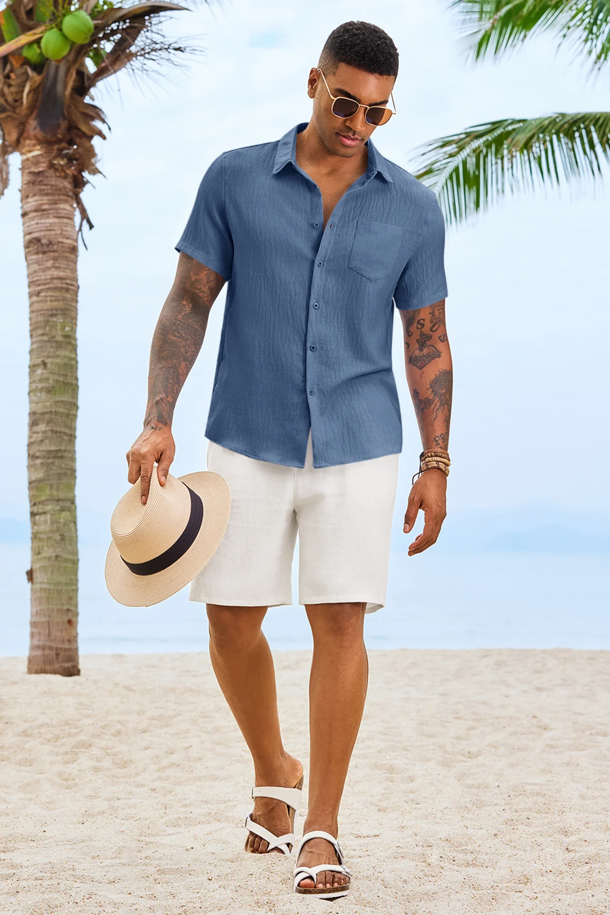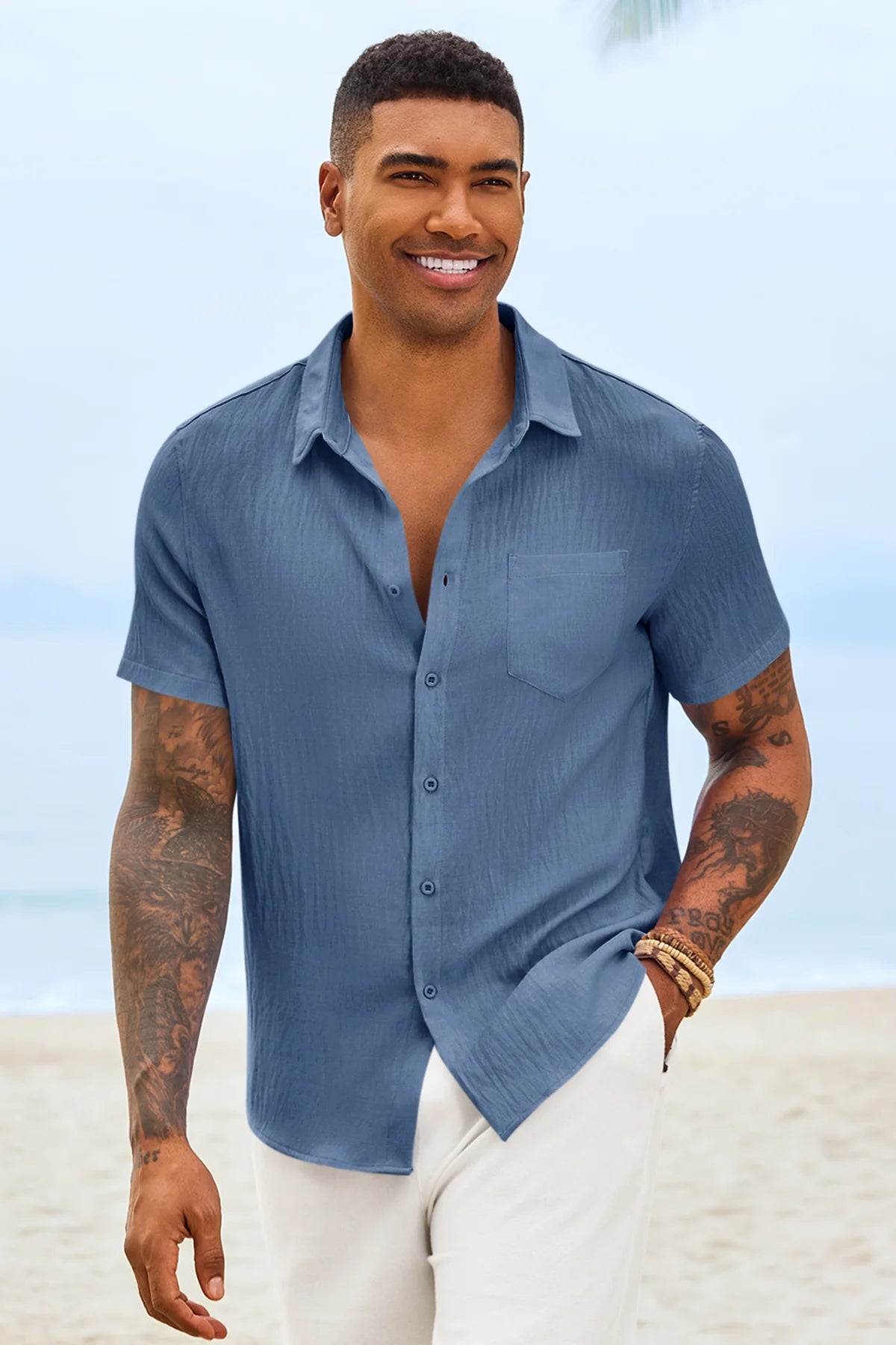 Introducing the mens casual shirt – a perfect blend of style and comfort! Made from light blens fabric, it’s designed for a relaxed fit with a classic short sleeve, button-down, and spread collar. It’s great for weddings or casual beach outings. Available in vibrant colors like Black, White, Sky Blue, and more, this shirt is a must-have for any wardrobe!