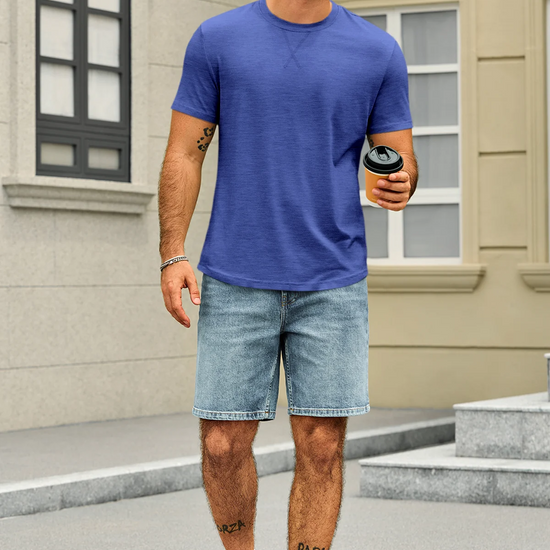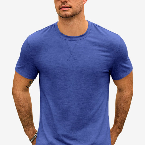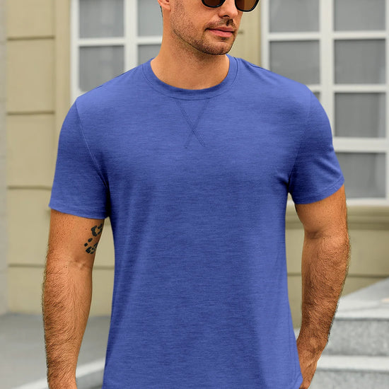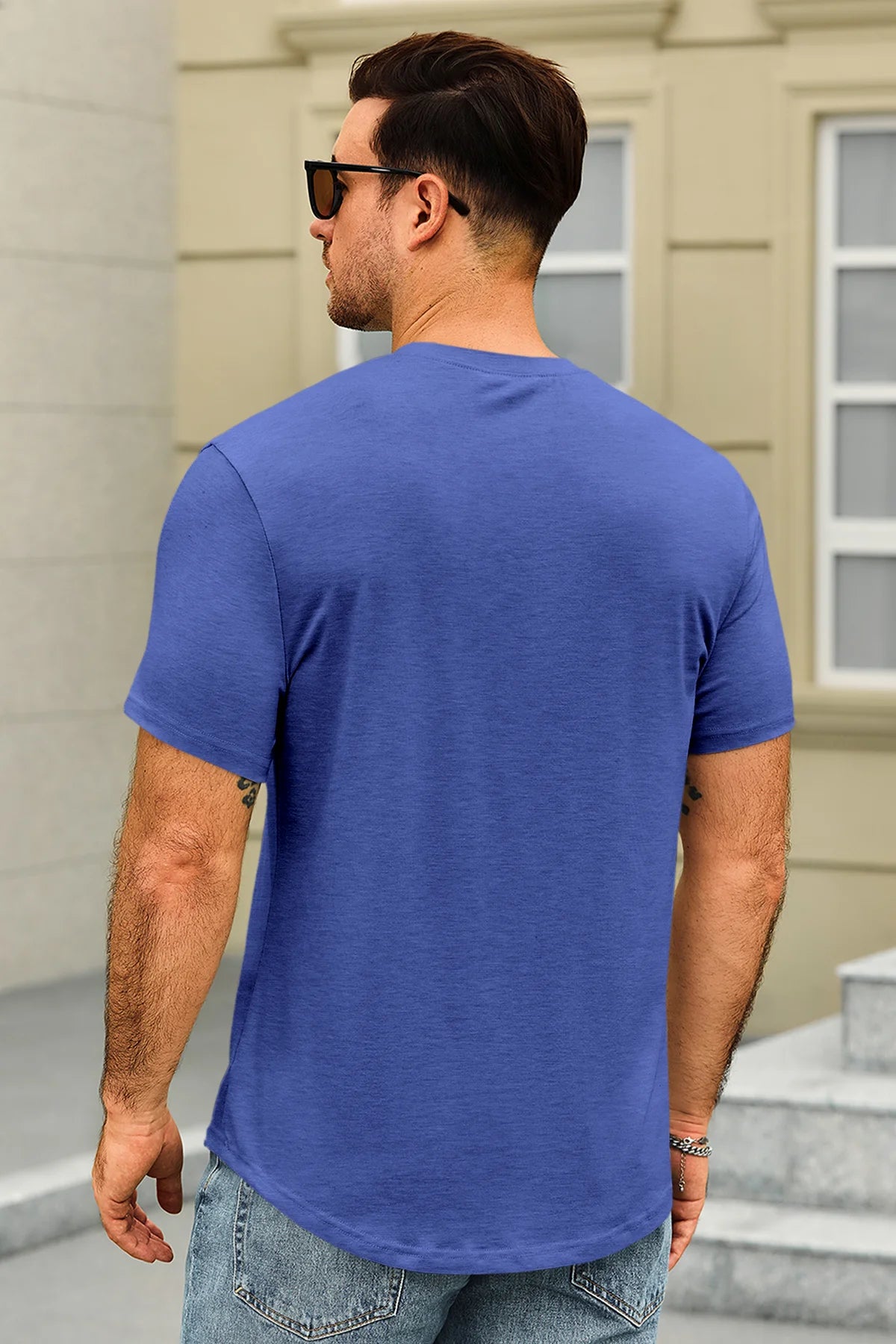 Classic men's short sleeve tee with a crew neck and curved hem. Made from lightweight stretch fabric for a comfortable, regular fit that retains its shape. Versatile for dressing up or down, perfect for casual outings, parties, or daily wear. A timeless, solid-color essential for any wardrobe. Check the size chart before ordering.