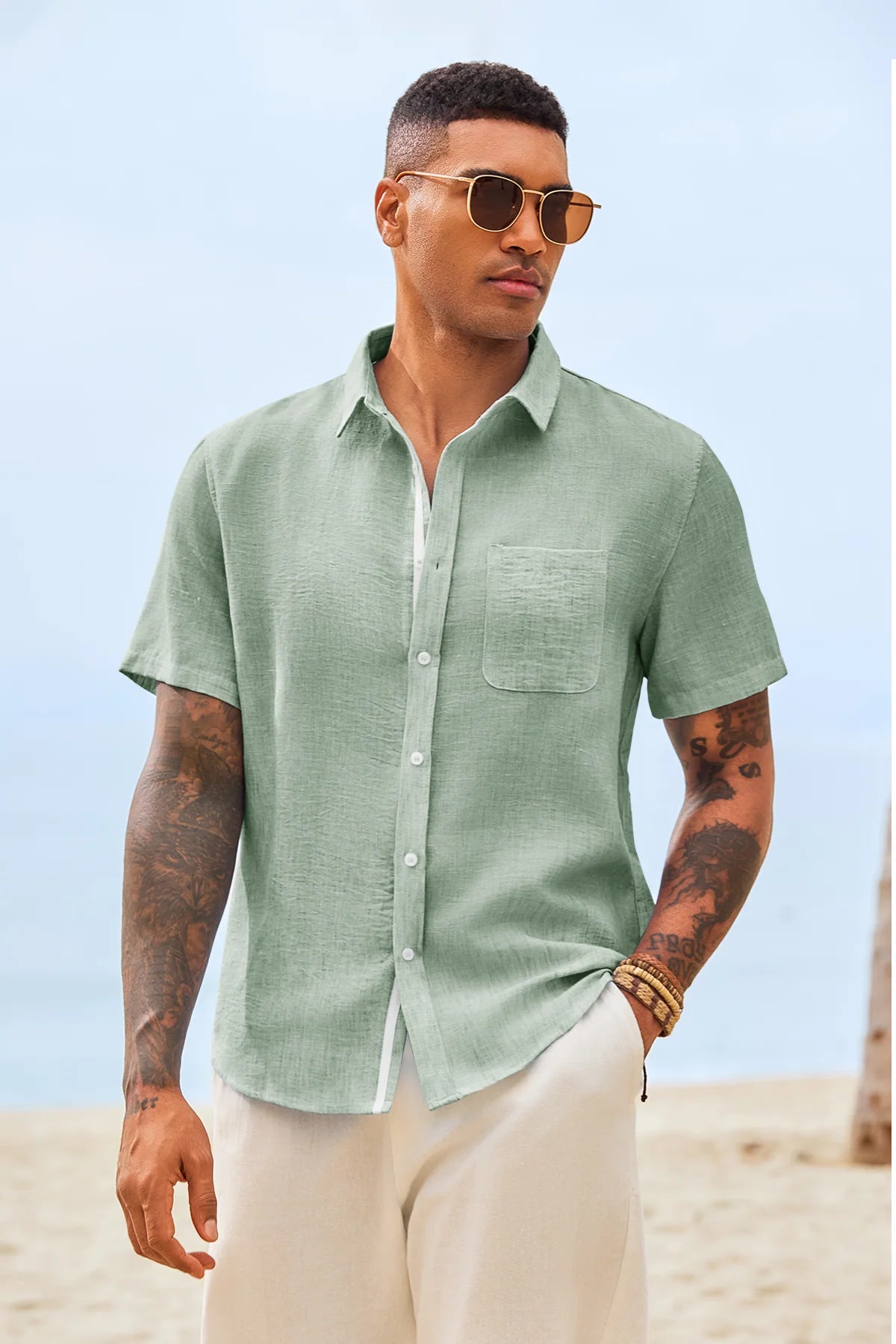 Introducing the mens casual shirt – a perfect blend of style and comfort! Made from light blens fabric, it’s designed for a relaxed fit with a classic short sleeve, button-down, and spread collar. It’s great for weddings or casual beach outings. Available in vibrant colors like Black, White, Sky Blue, and more, this shirt is a must-have for any wardrobe!