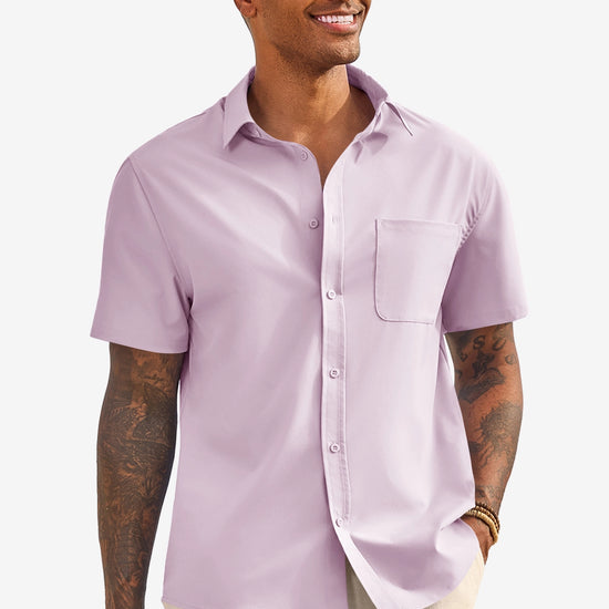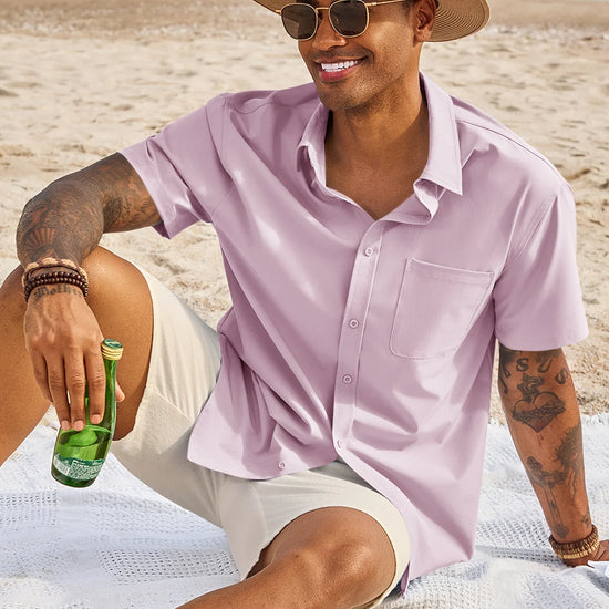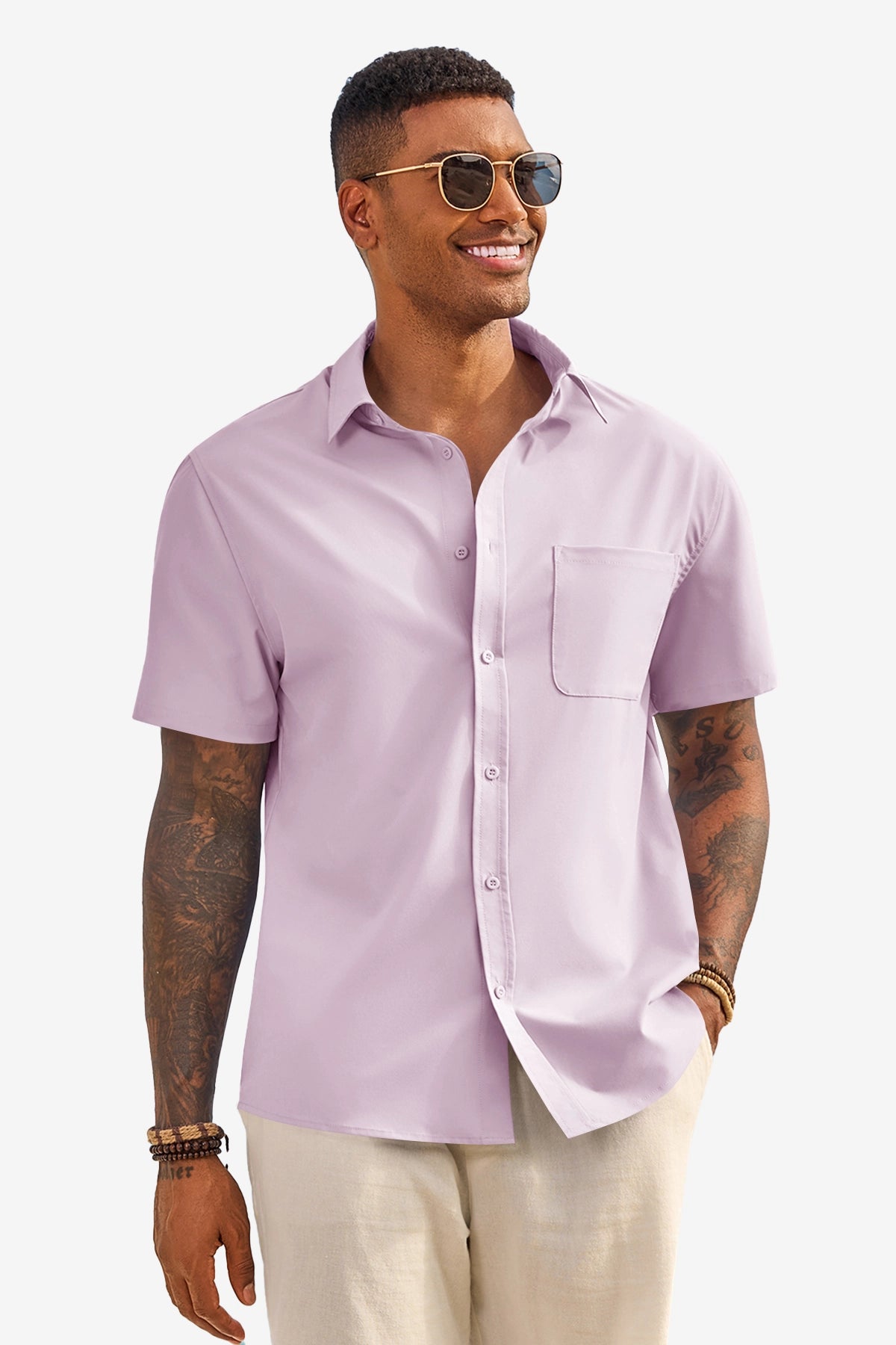 Runcati Mens Pink Short Sleeve Casual Dress Shirt