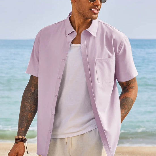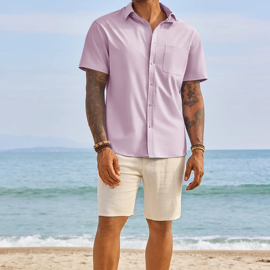 Discover the perfect balance of professional style and relaxed comfort with this Runcati men's short sleeve dress shirt. Designed with a modern untucked length, this solid-colored button-down features a crisp turn-down collar and a versatile regular fit. It’s the ultimate summer essential for the man who demands a sharp look without the effort.
