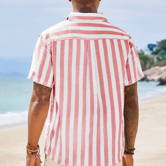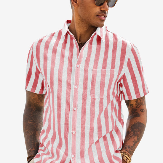 Introducing the men’s casual stripe shirt – a timeless blend of style and comfort! It features classic timeless stripe patterns (available in slim or wide stripe options) for versatile appeal. Designed with a relaxed fit, short sleeves, button-down closure, and spread collar, it’s perfect for business casual, beach outings, weddings, or daily wear. A wardrobe staple that balances sophistication and ease!