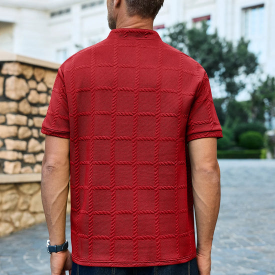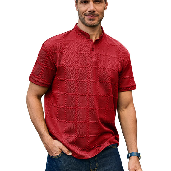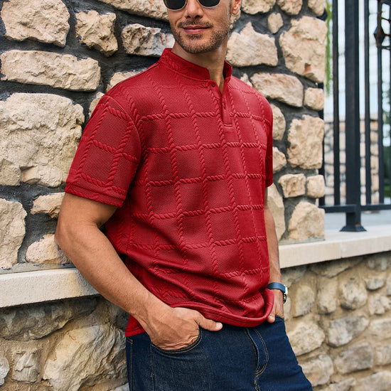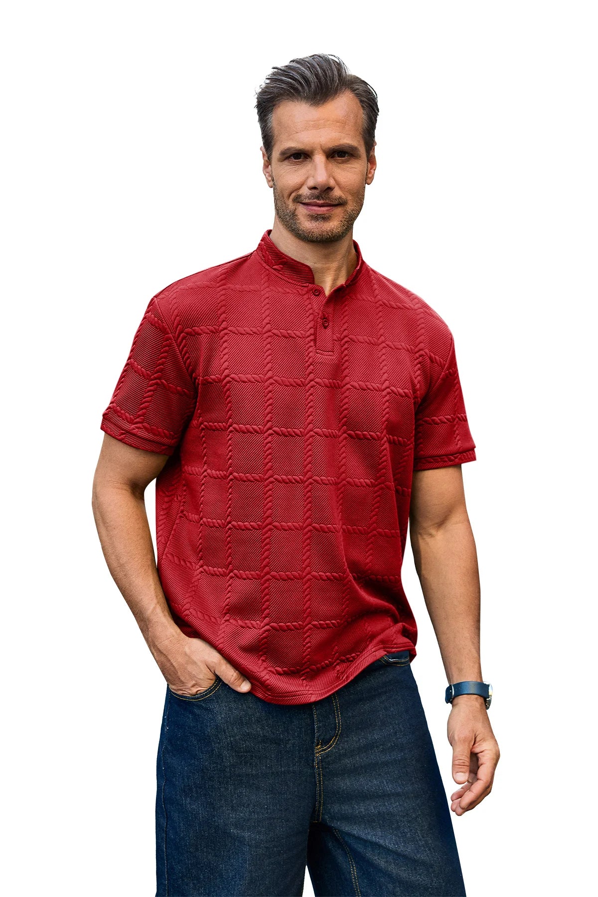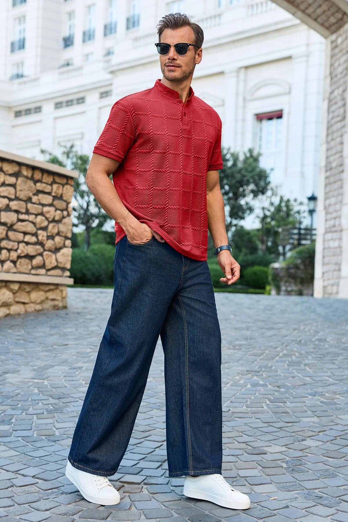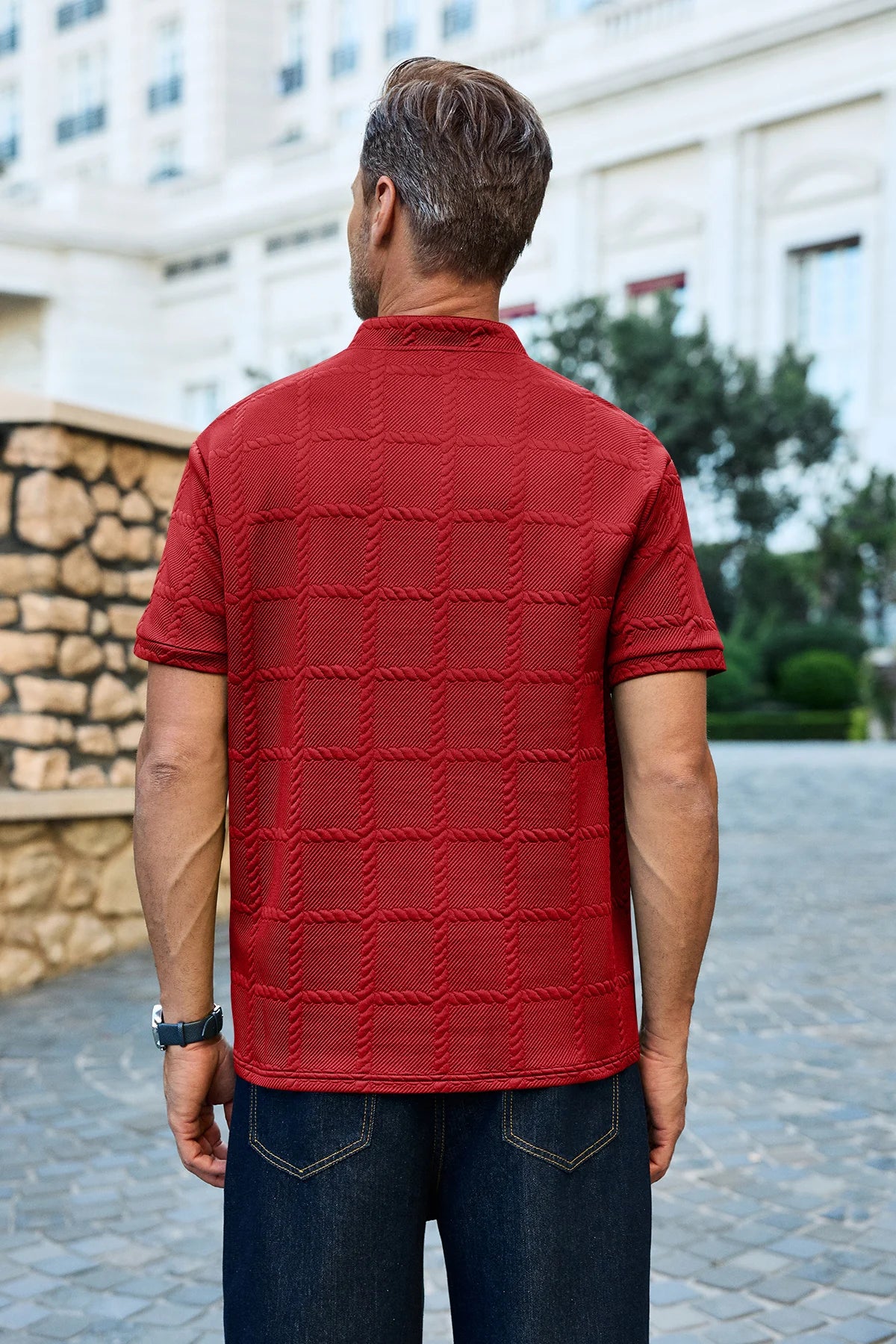 Elevate your smart-casual rotation with this Runcati men’s textured Henley shirt. Featuring a sophisticated plaid jacquard knit and a sleek stand collar, this polo alternative offers a refined, modern silhouette. Perfectly balanced between business-casual and weekend-ready, its wrinkle-free fabric ensures you maintain a polished, professional look from the office to the airport.