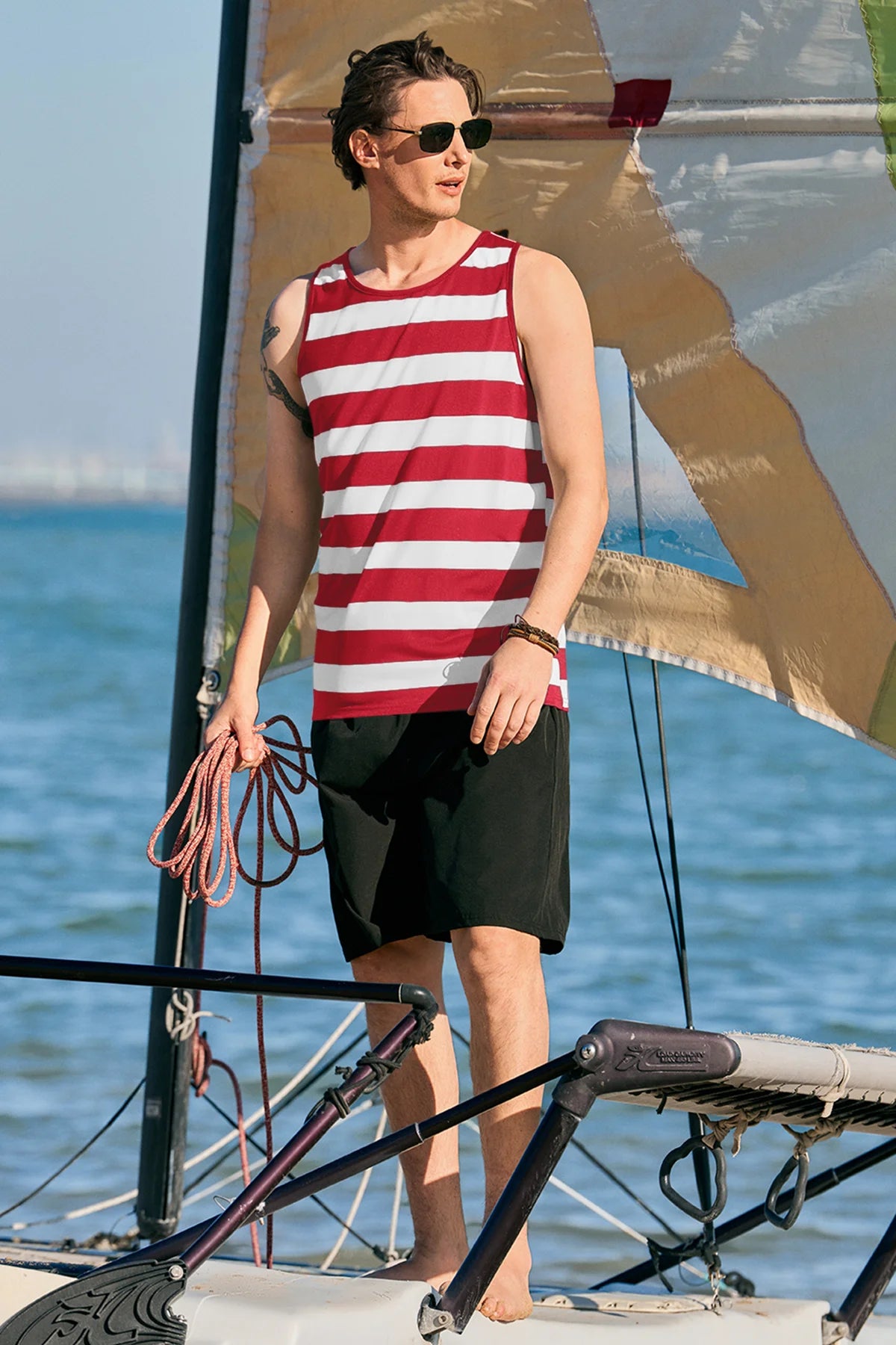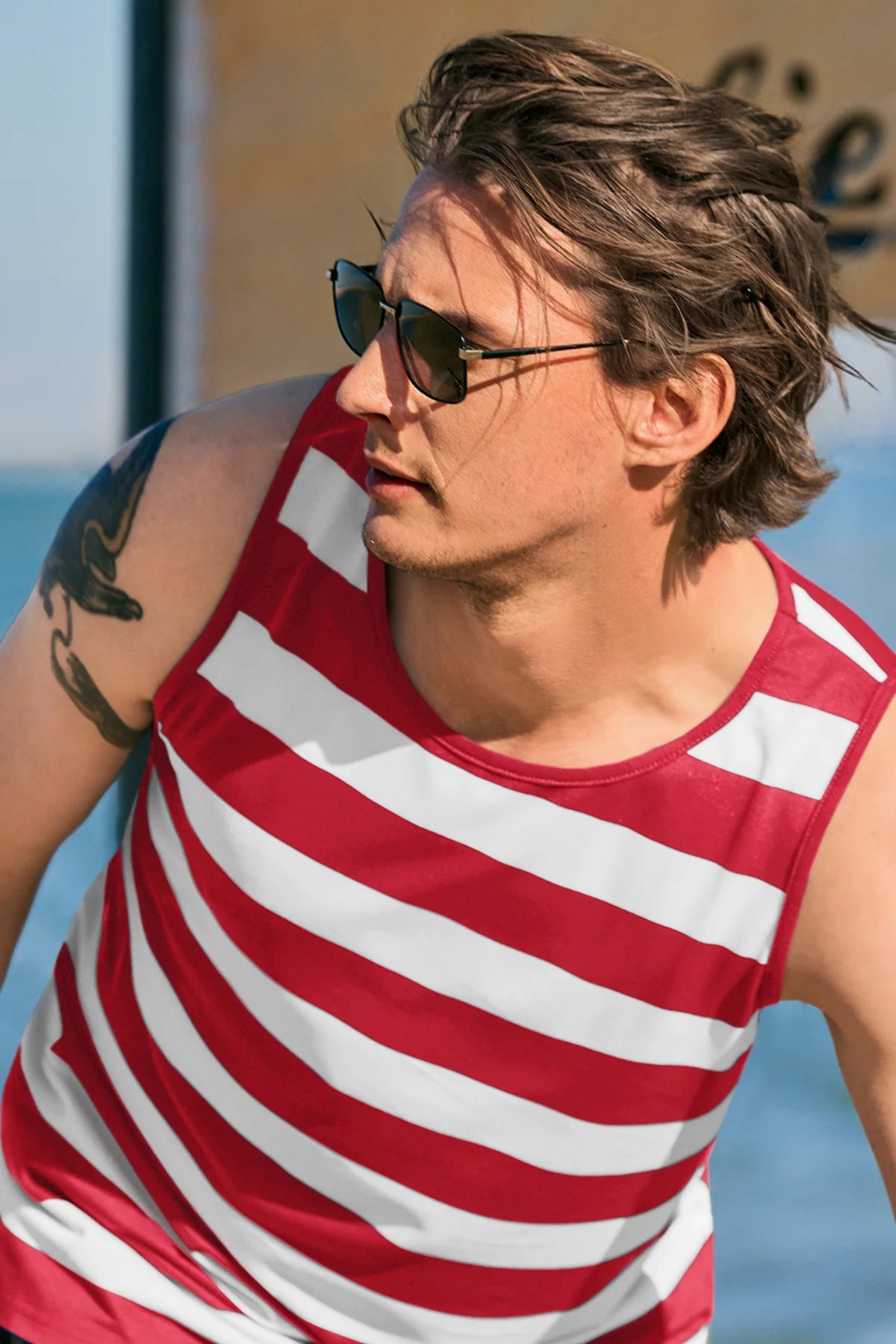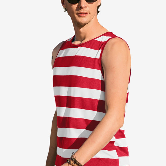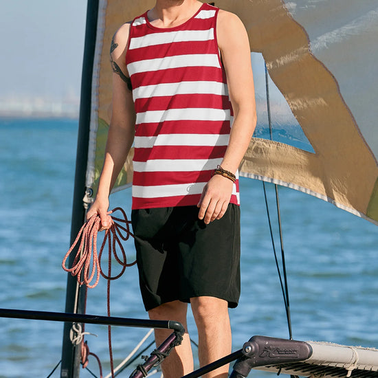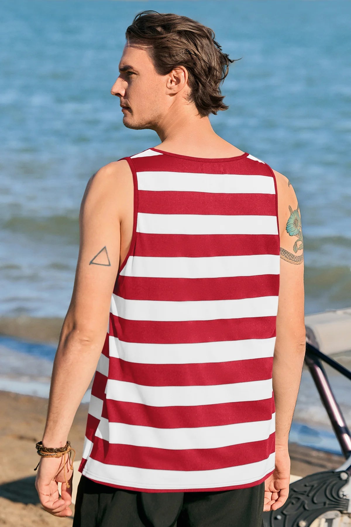 Elevate your active and casual wardrobe with Runcati Men’s Striped Workout Tank Tops—designed for performance and style. Made from a 95% polyester, 5% spandex blend, this sleeveless scoop neck tee features color-block collar/cuffs, wide contrast stripes, and roomy arm holes for free movement. Perfect for gym sessions, beach days, yard work, or lounging, it blends comfort and versatility seamlessly.