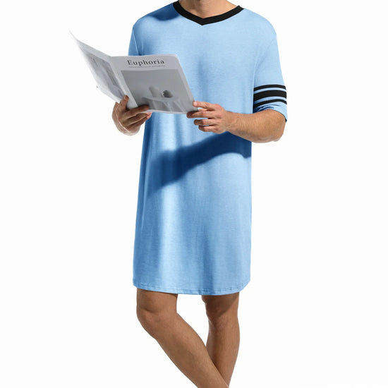 Runcati Mens Sky Blue Short Sleeve Nightshirt