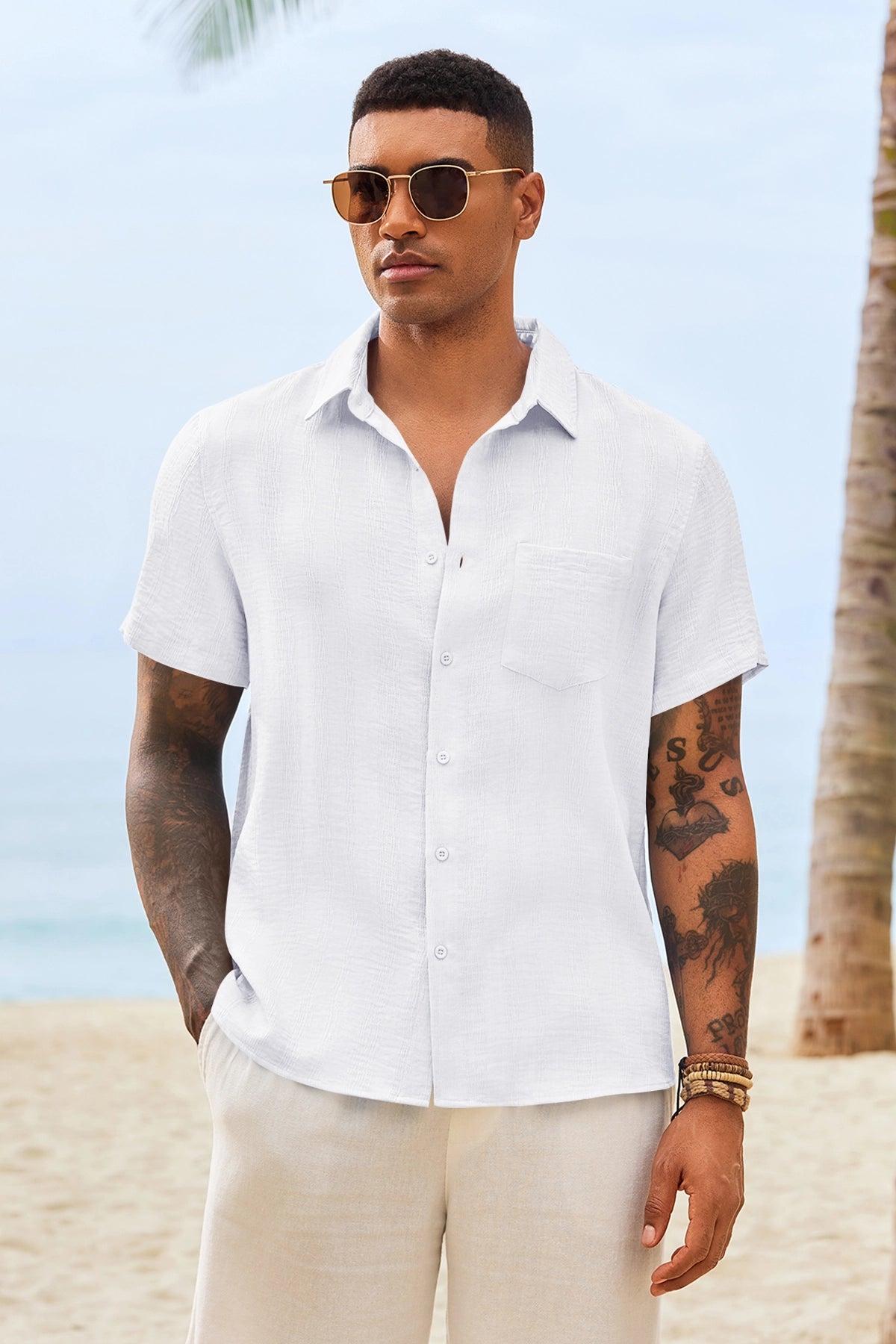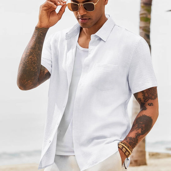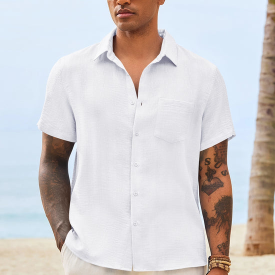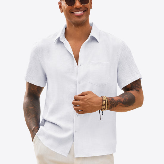 Introducing the mens casual shirt – a perfect blend of style and comfort! Made from light blens fabric, it’s designed for a relaxed fit with a classic short sleeve, button-down, and spread collar. It’s great for weddings or casual beach outings. Available in vibrant colors like Black, White, Sky Blue, and more, this shirt is a must-have for any wardrobe!