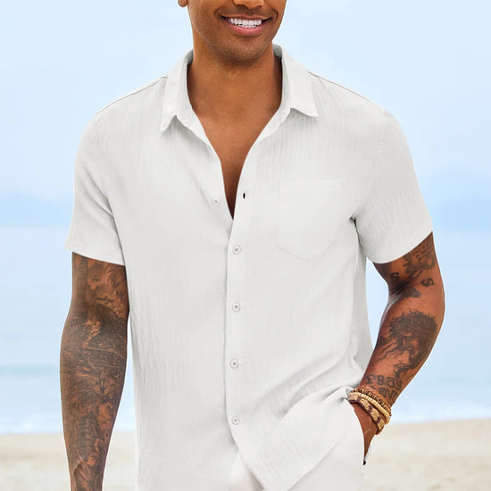 Introducing the mens casual shirt – a perfect blend of style and comfort! Made from light blens fabric, it’s designed for a relaxed fit with a classic short sleeve, button-down, and spread collar. It’s great for weddings or casual beach outings. Available in vibrant colors like Black, White, Sky Blue, and more, this shirt is a must-have for any wardrobe!