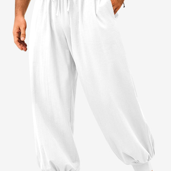 TThese men’s baggy harem pants are comfy and trendy—2 side pockets, elastic waist with drawstring, solid color, loose fit for all-day ease, plus elastic hems for a chill look. Made of good cotton, soft, breathable, light, keeps you cool. Pair with tees, button-downs, sneakers for daily wear, or beach shirts, sandals for vacation. Great for yoga, travel, beach, home, holidays—even pirate cosplay or Halloween, works all year.