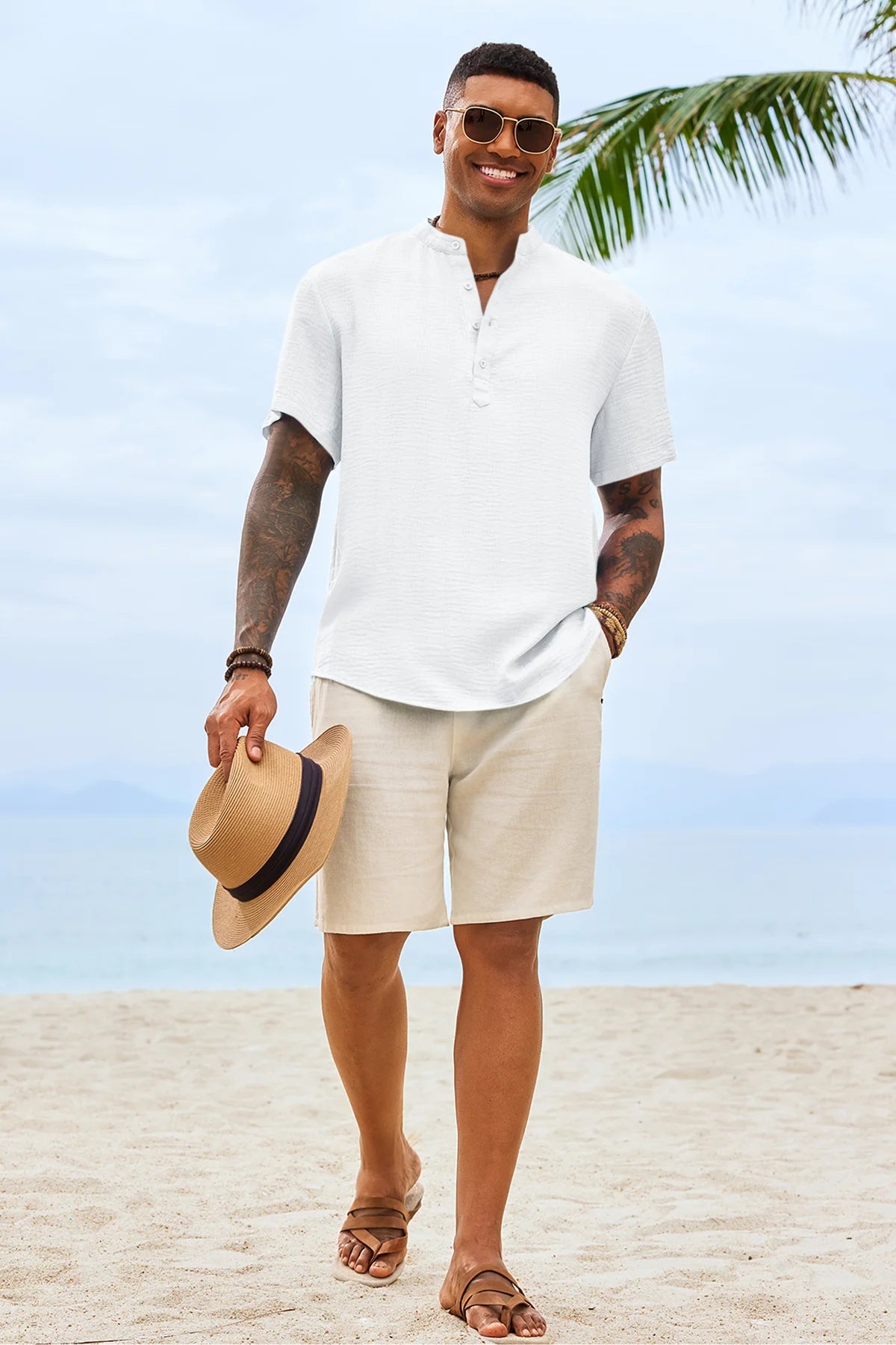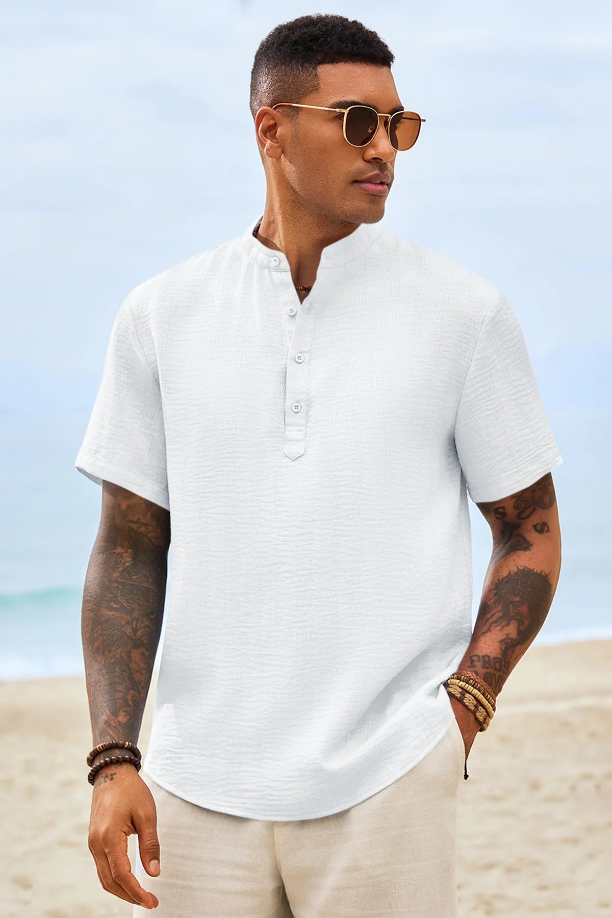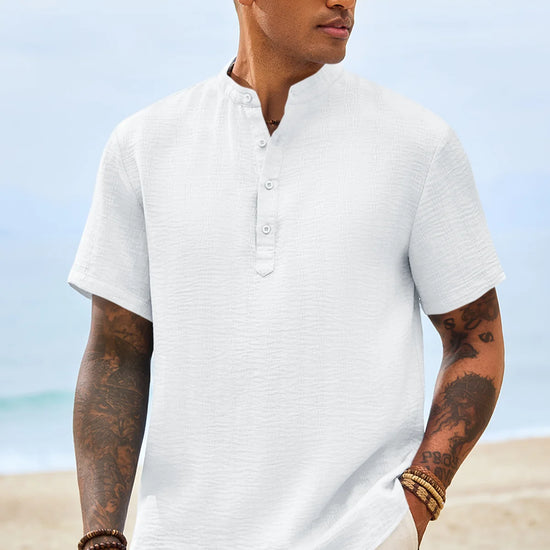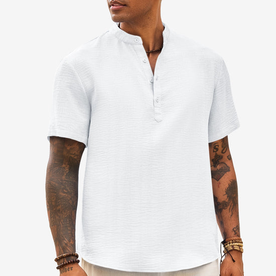 Elevate your casual wardrobe with Runcati Men’s Short Sleeve Henley Shirt—crafted for comfort and timeless style. This textured band collar shirt features a classic four-button placket and regular fit, blending hippie vibes with modern versatility. Lightweight and breathable 100% polyester keeps you cool on summer beaches, daily outings, or casual gatherings.