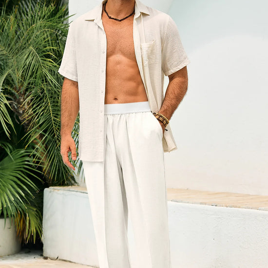 Master the art of effortless summer style with the Runcati Men's Linen Pants. Featuring a classic straight-leg cut and sophisticated pleated front, these trousers offer a sharp silhouette without sacrificing comfort. The breathable linen-blend fabric and adjustable elastic waistband make them the perfect choice for beach weddings, tropical travel, or relaxed weekend lounging.
