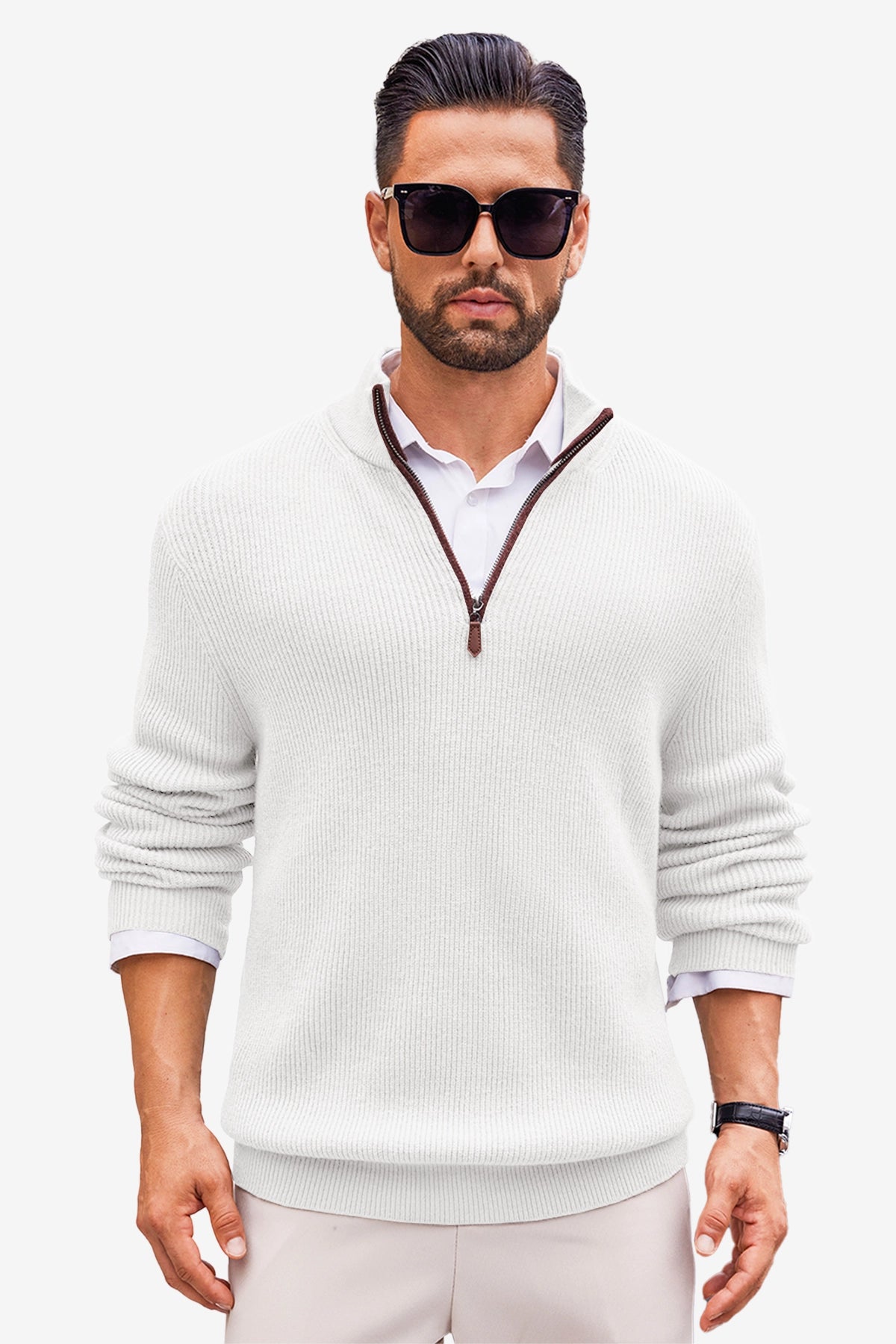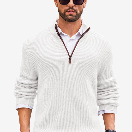 Check out our classic-fit quarter-zip knit sweater! It's made from a soft, lightweight thermal fabric that feels great against your skin. Perfect for fall, spring, and winter, this versatile piece can be worn solo or layered under a jacket. Dress it up for work or keep it casual with jeans—it's an essential for any occasion. Available in multiple vintage colors. Easy care: just hand wash or machine wash, but no bleach! Got questions? Reach out anytime!