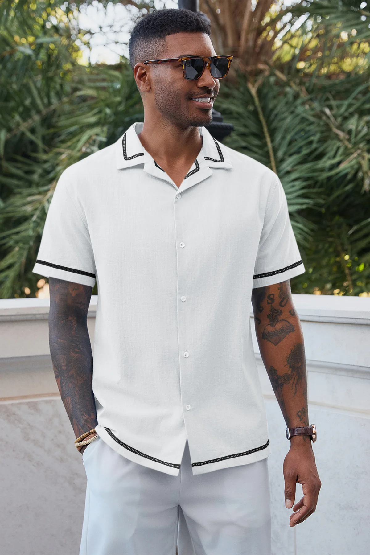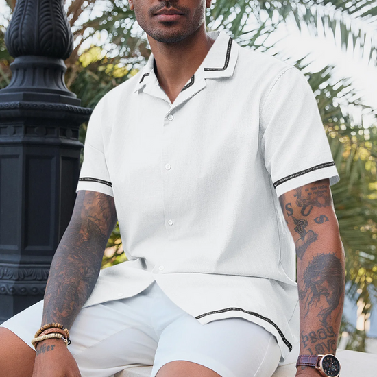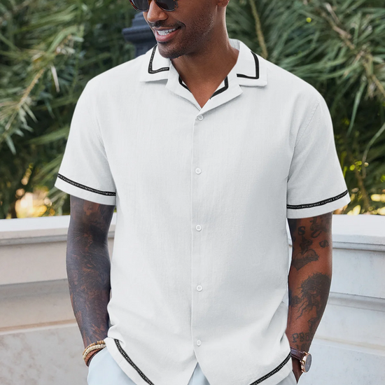 Classic Cuban collar and short sleeves tailored for hot weather, delivering a laid-back vacation aesthetic.