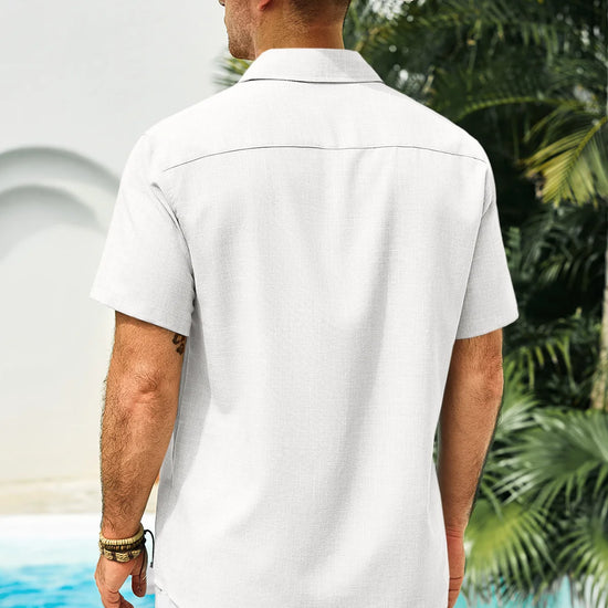 Introducing the mens casual contrasting plaid shirt – a perfect blend of style and comfort! Made from light blens fabric, it’s designed for a relaxed fit with a classic short sleeve, button-down, and spread collar. Featuring unique contrasting plaid design at the collar and placket adds a chic touch, it’s great for weddings or casual beach outings. Available in vibrant colors like Black, White, Sky Blue, and more, this shirt is a must-have for any wardrobe!