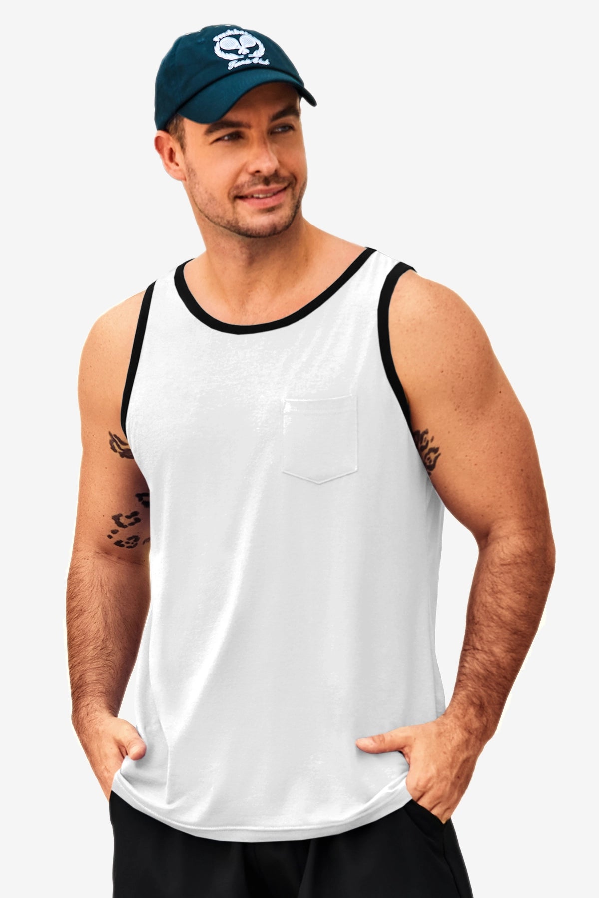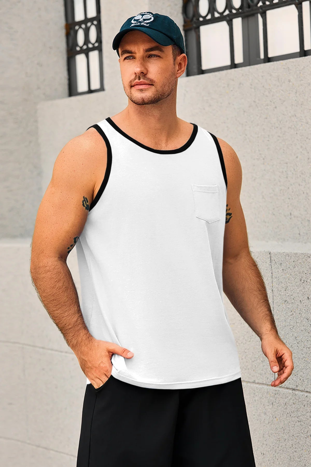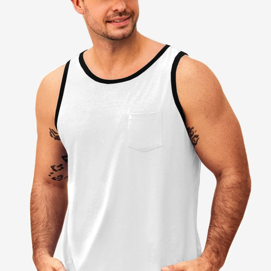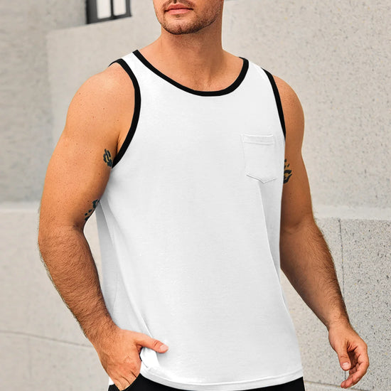 Men's workout athletic tank tops feature crewneck, sleeveless cut-off design, color block, one chest pocket, and loose fit for maximum freedom and comfort—keeping you cool all summer. Crafted from high-quality cotton blend, the sleeveless tee is breathable, soft, lightweight, skin-friendly, and quick-drying to keep you dry during intense workouts.