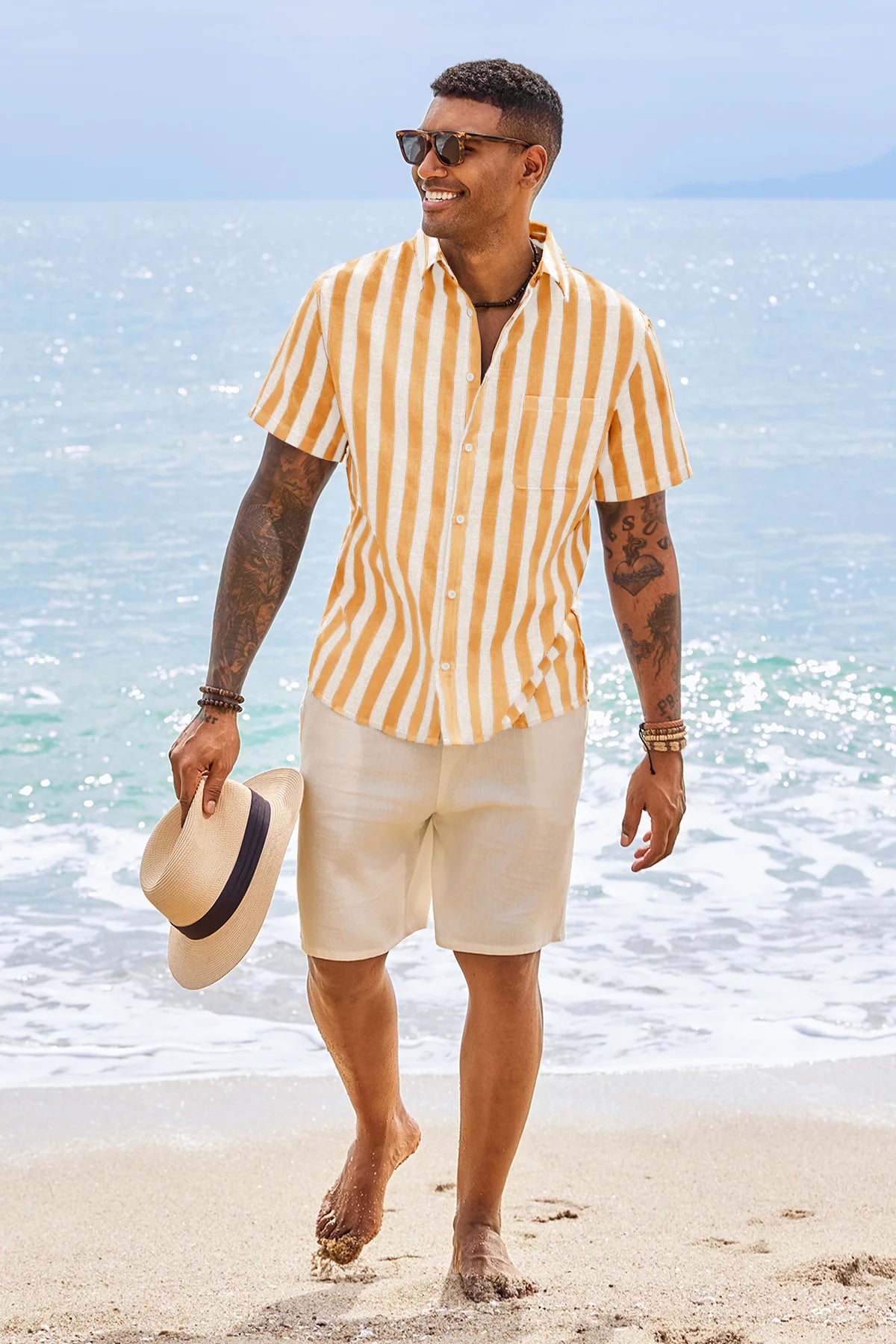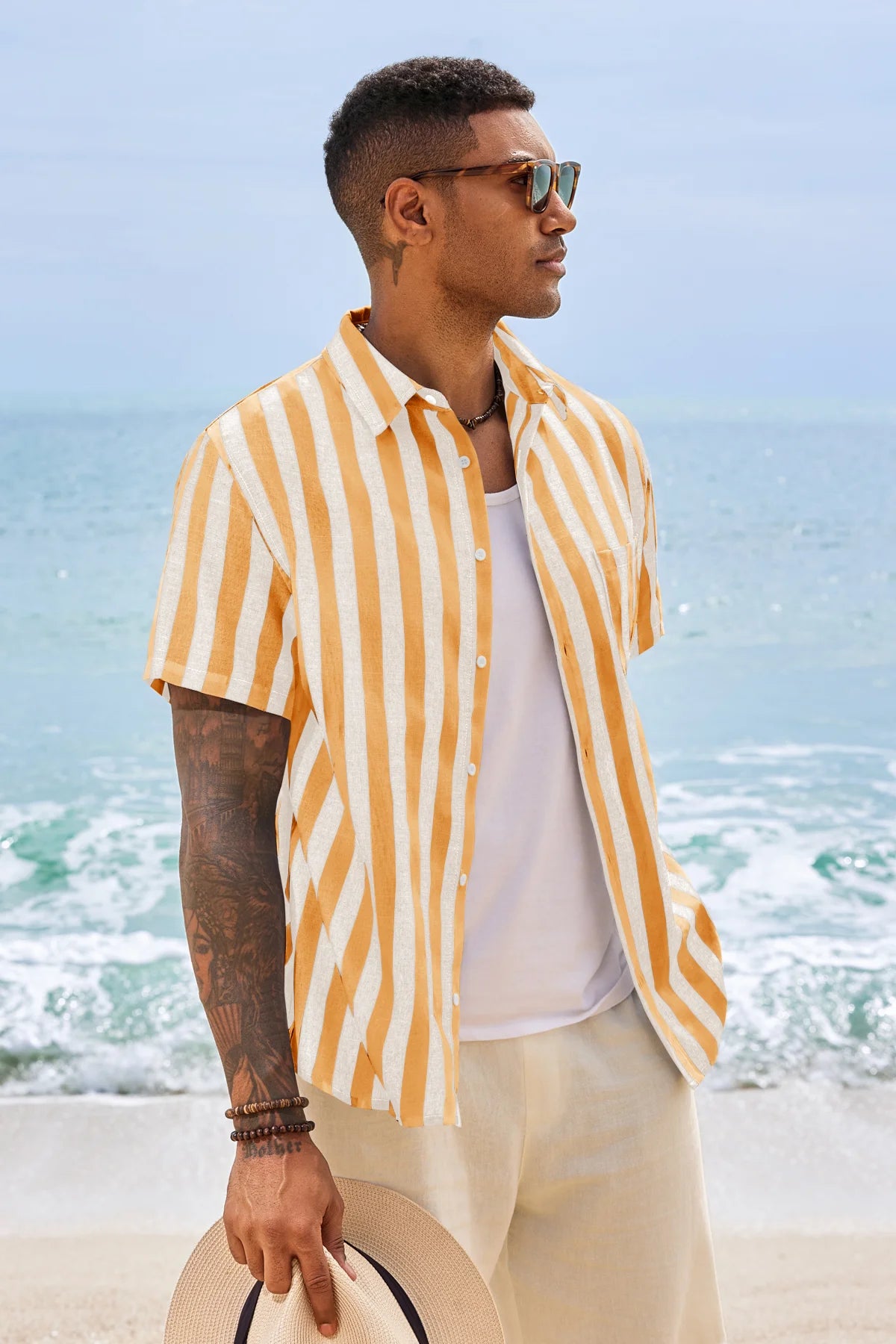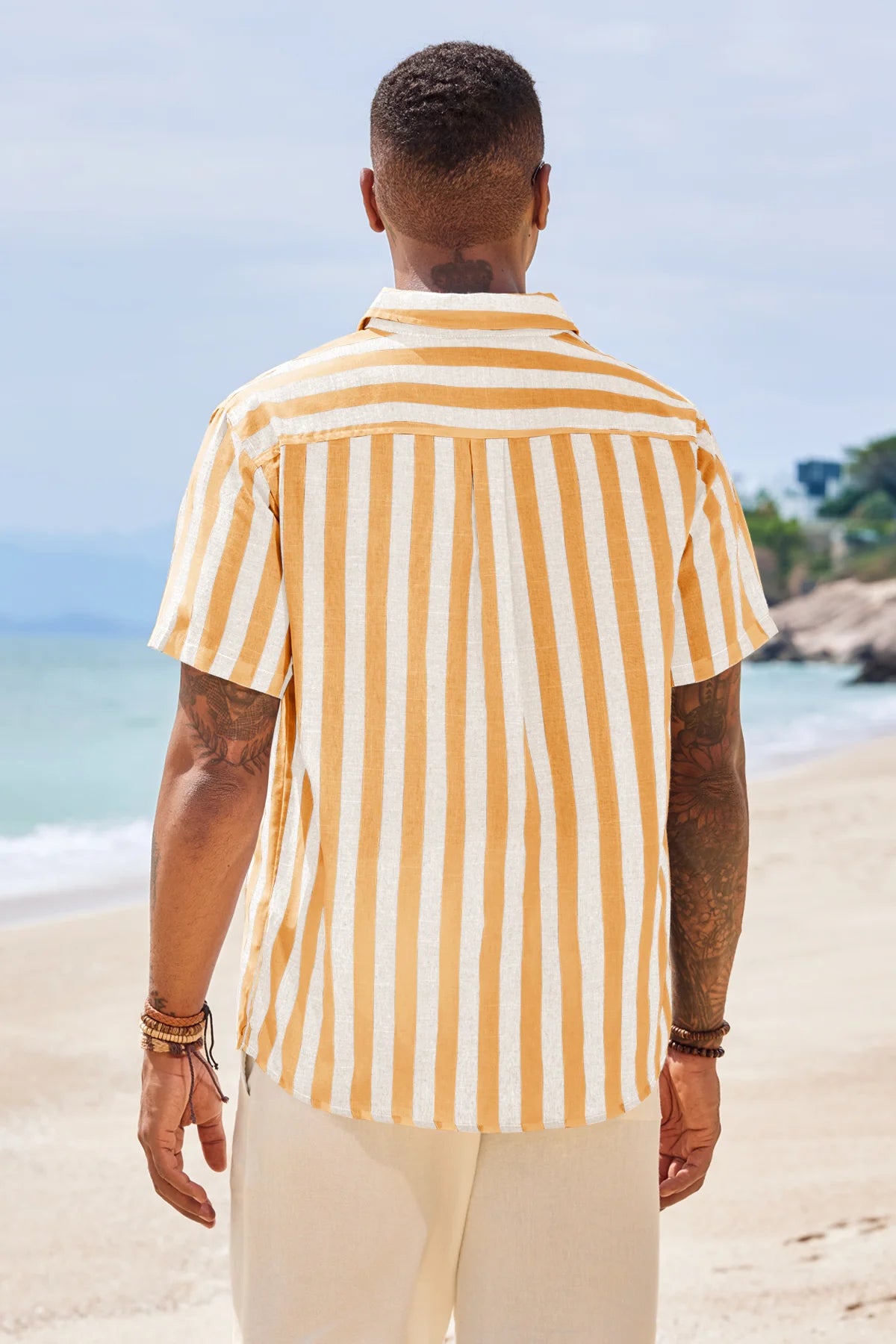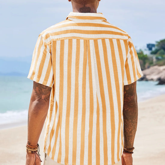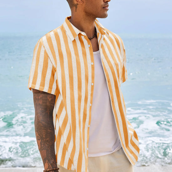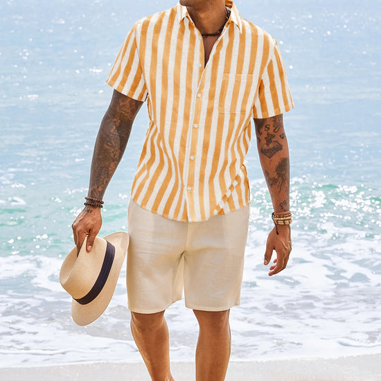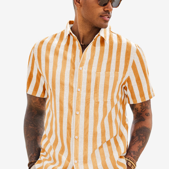 Introducing the men’s casual stripe shirt – a timeless blend of style and comfort! It features classic timeless stripe patterns (available in slim or wide stripe options) for versatile appeal. Designed with a relaxed fit, short sleeves, button-down closure, and spread collar, it’s perfect for business casual, beach outings, weddings, or daily wear. A wardrobe staple that balances sophistication and ease!