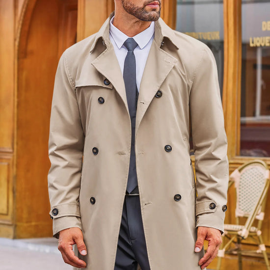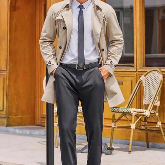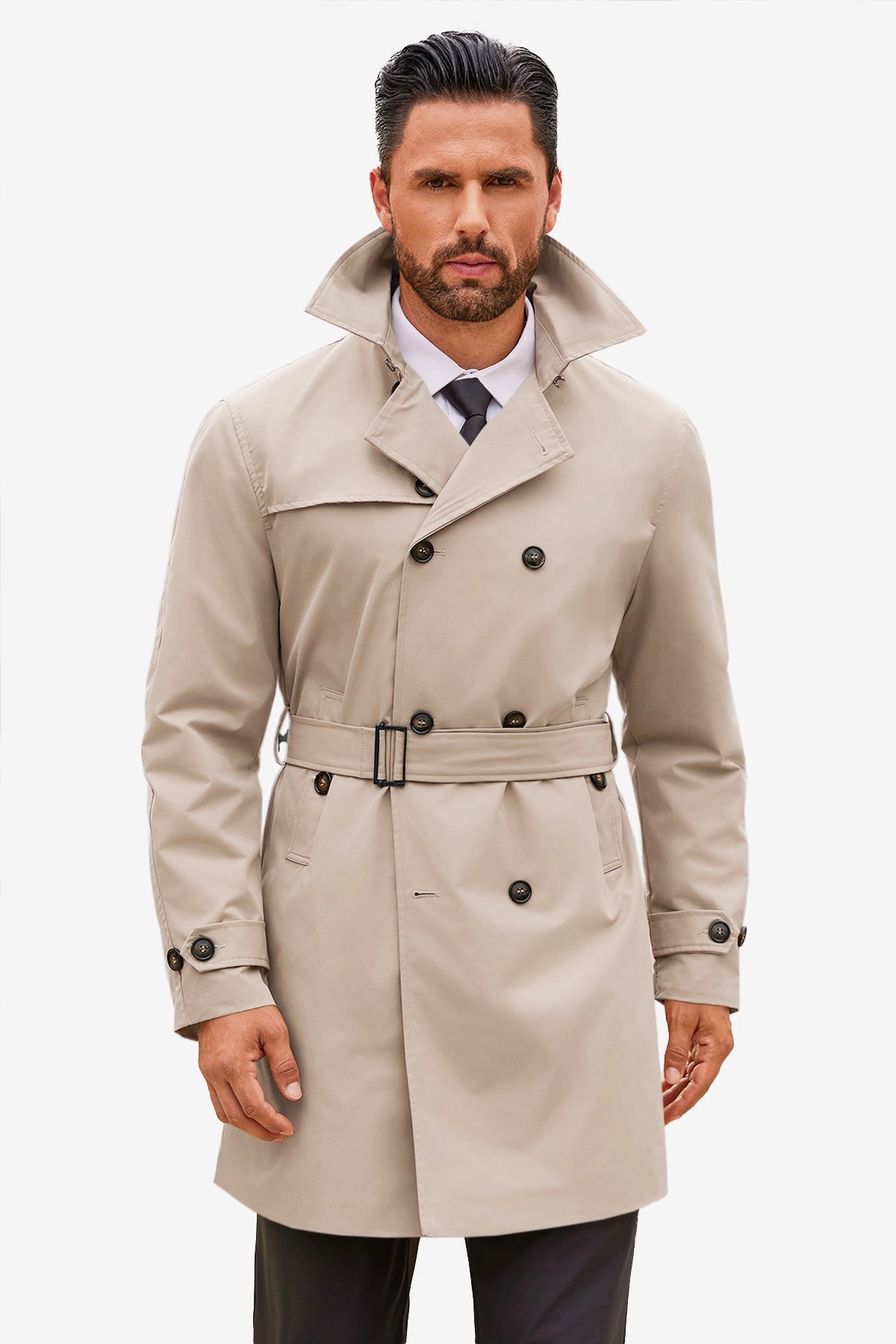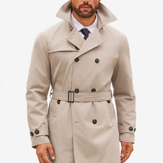 This sleek double-breasted trench coat is a versatile must-have! Made from lightweight, breathable polyester, it features a slim fit, lapel collar, and comes with a waist belt for a modern look. Perfect for work or weekends, it easily dresses up or down. Just toss it in cold wash and you're good to go