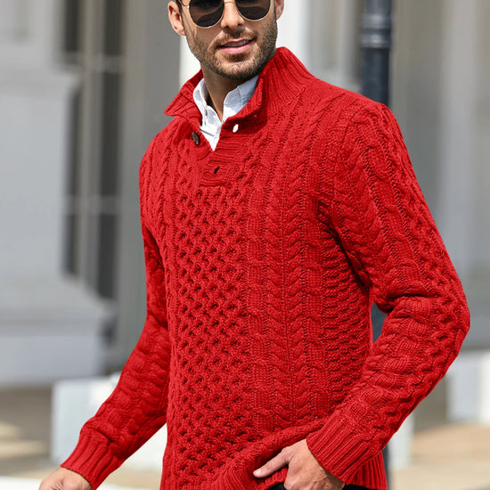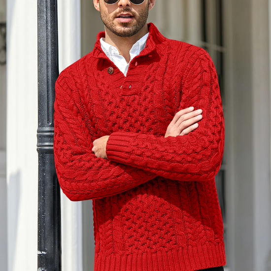 Runcati Red Stand Collar Pullover Sweater are designed for exceptional softness and all-day comfort. Crafted from a high-quality, lightweight cotton blend fabric, It's the perfect blend of cozy warmth and easy wearability.
