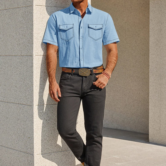 Description: Saddle up for a blend of heritage and modern style with the Runcati Men’s Western Button-Down. Featuring authentic color-block yokes and a classic plaid pattern, this cotton-linen shirt delivers a sophisticated cowboy aesthetic. Built for the confident man, it offers a breathable, regular fit that keeps you sharp from the rodeo to the city.