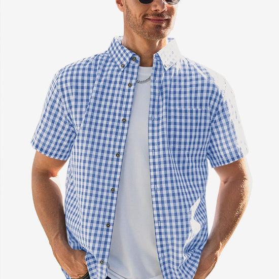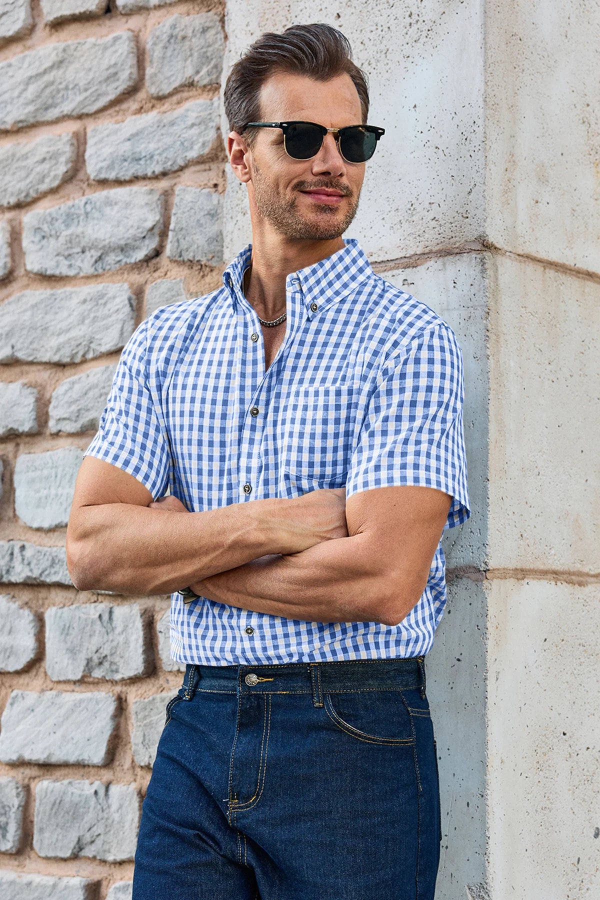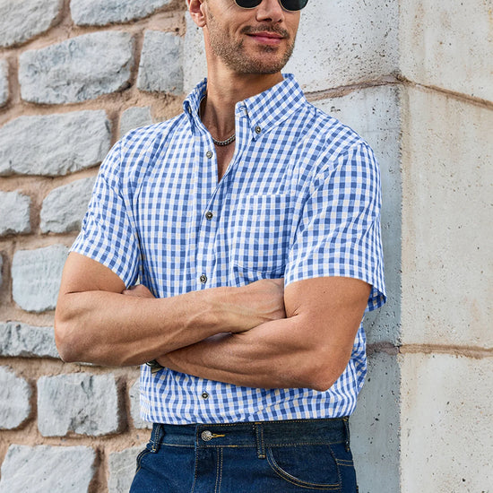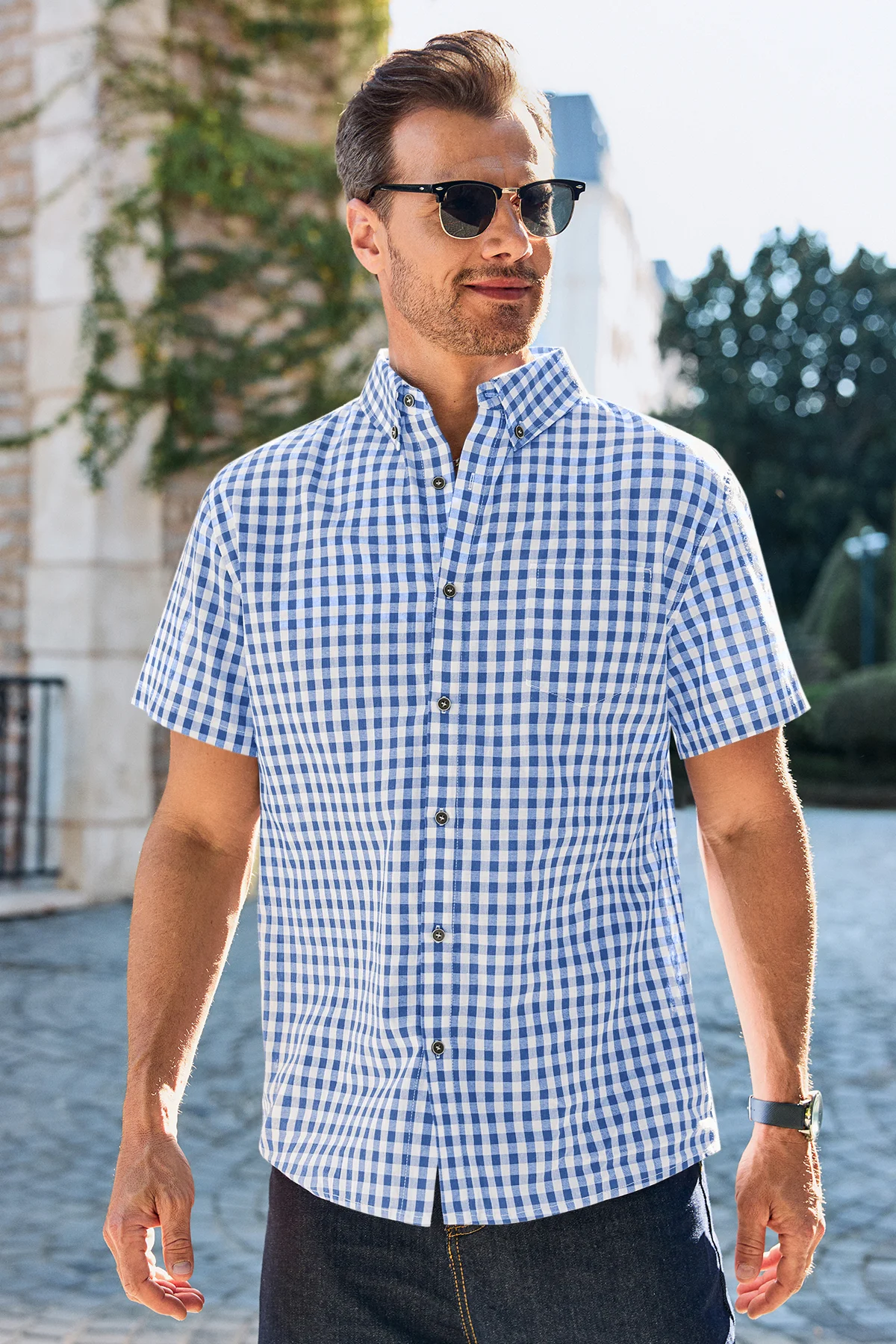 Description: Elevate your casual-business attire with the Runcati Men’s Plaid Shirt. Expertly crafted from a breathable linen blend, this short-sleeve button-down combines a classic spread collar with a modern regular fit. Perfect for staying cool and confident from office meetings to weekend social gatherings. Experience effortless style and all-day comfort.