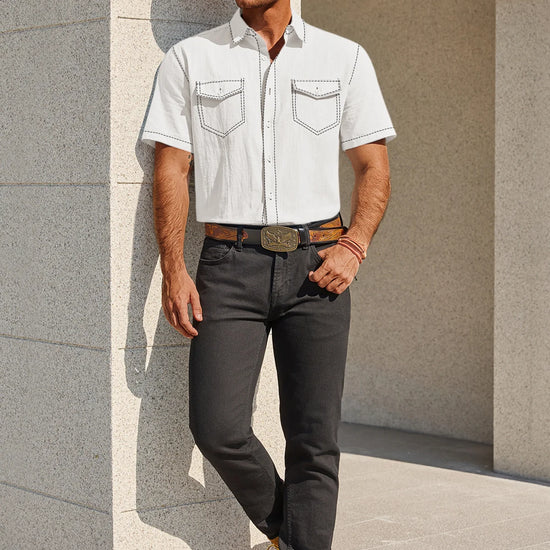 Description: Saddle up for a blend of heritage and modern style with the Runcati Men’s Western Button-Down. Featuring authentic color-block yokes and a classic plaid pattern, this cotton-linen shirt delivers a sophisticated cowboy aesthetic. Built for the confident man, it offers a breathable, regular fit that keeps you sharp from the rodeo to the city.